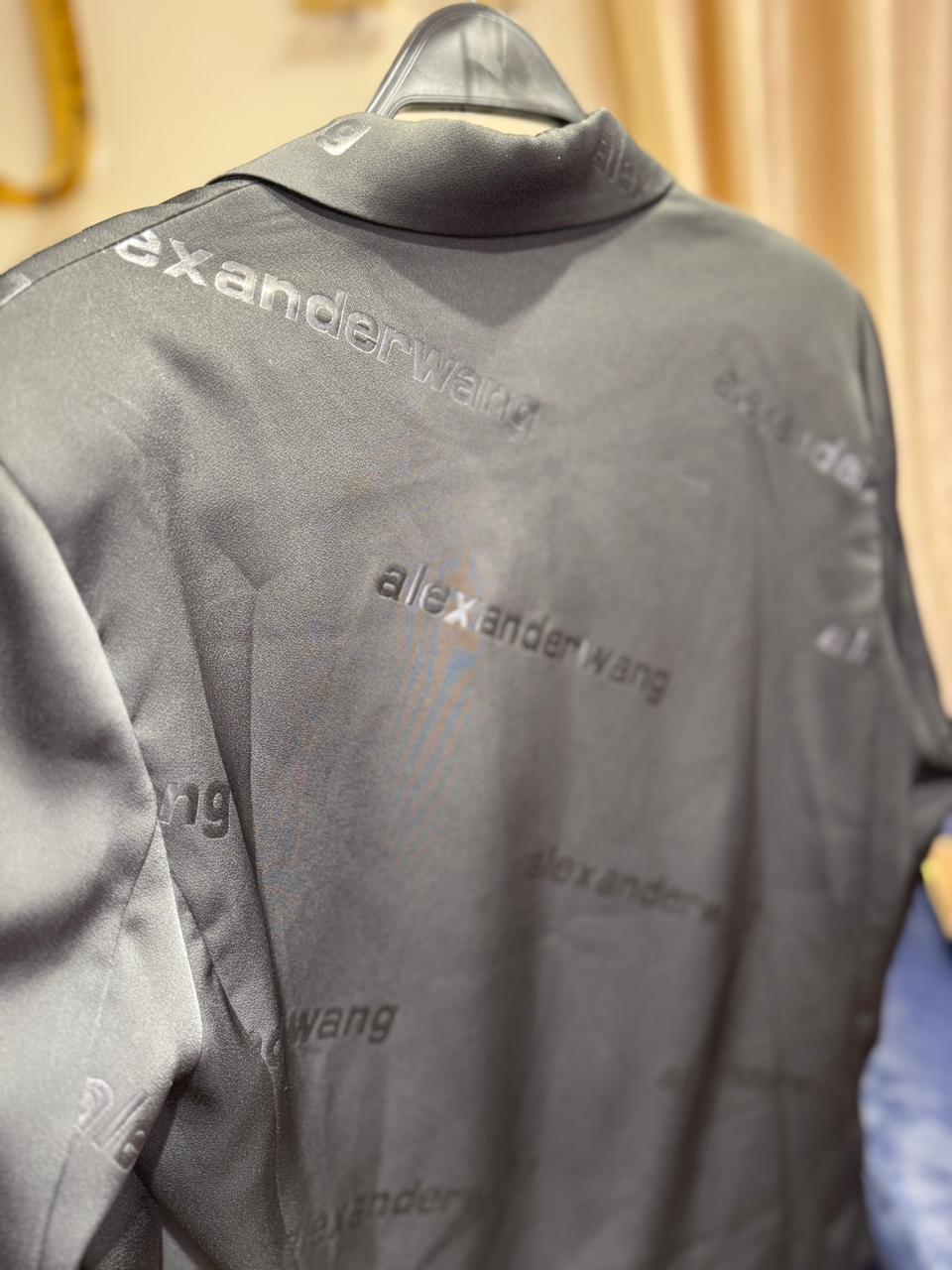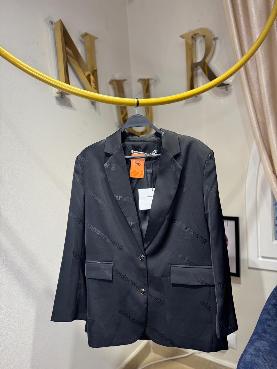 ALEXANDER WANG FORMAL BLAZER IN BLACK SILK WITH LOGO PRINTED DETAIL