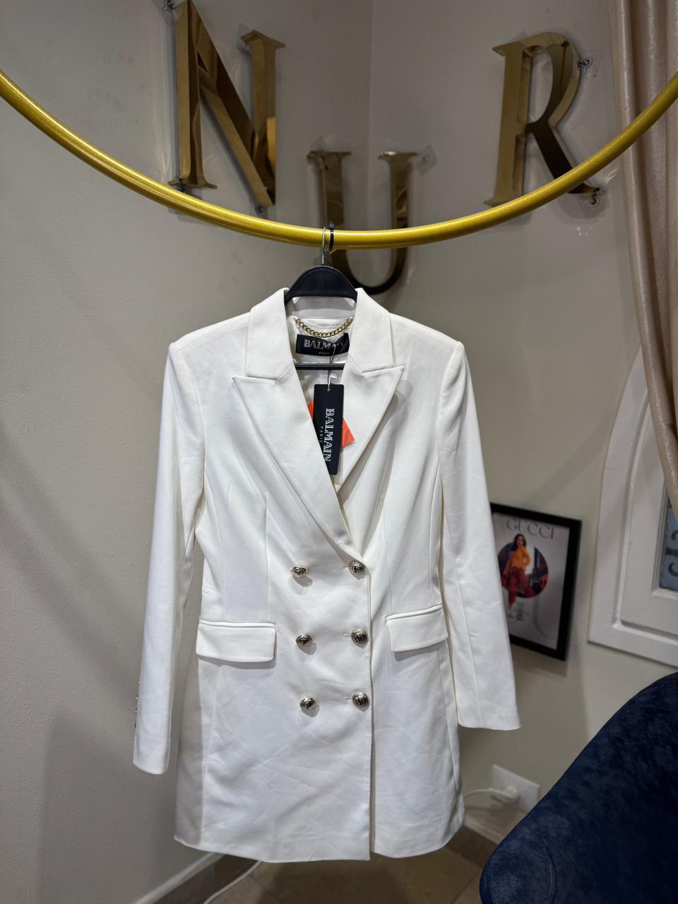 BALMAIN CLASSIC LONG BLAZER WITH BACK ZIPPER DETAIL