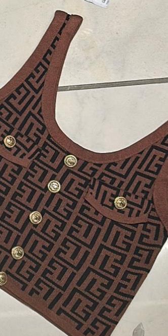 BALMAIN TOP WITH LOGO PRINTED DETAIL IN BROWN