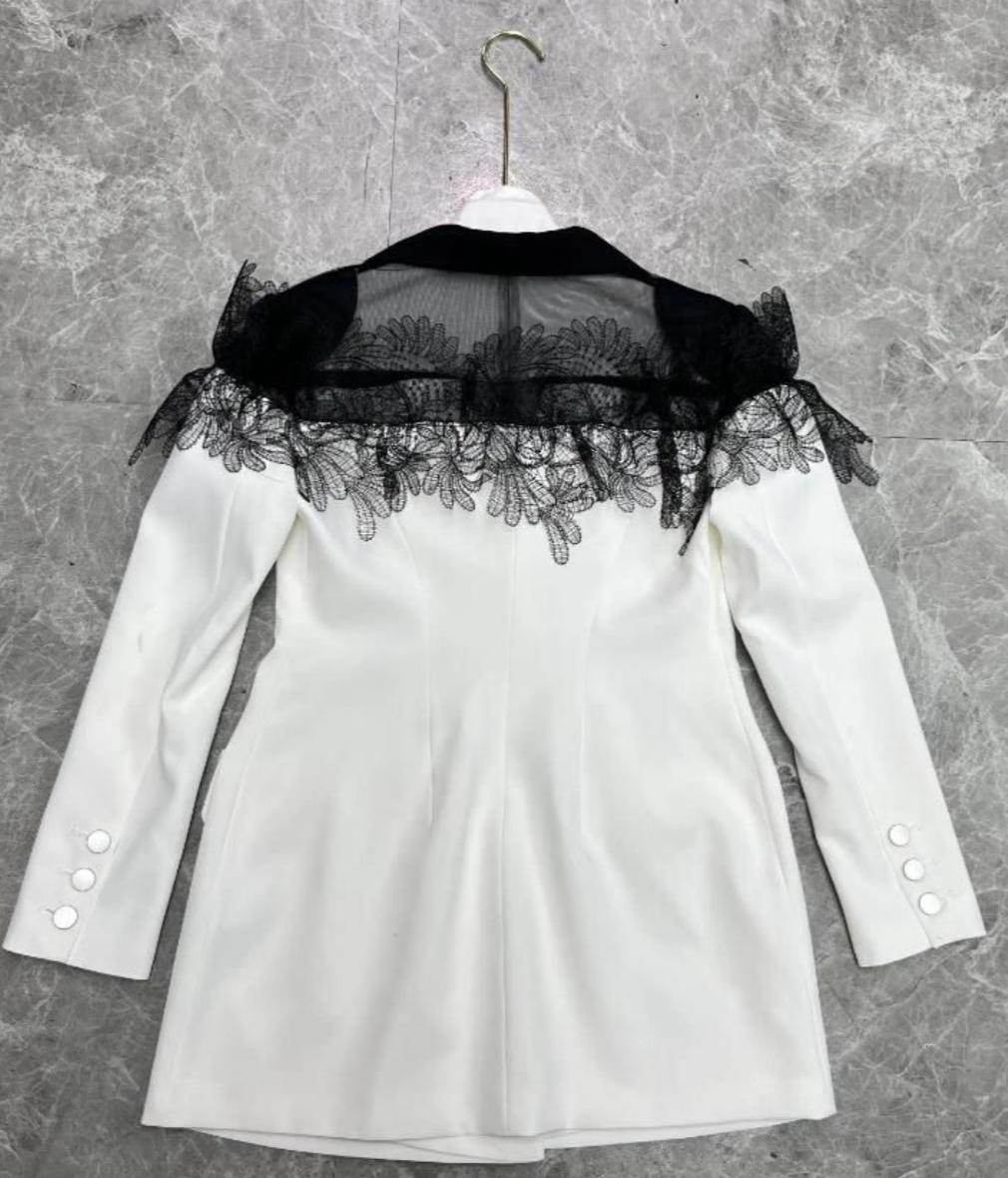 CD CLASSIC WHITE BLAZER WITH SHOULDER LACE DETAIL