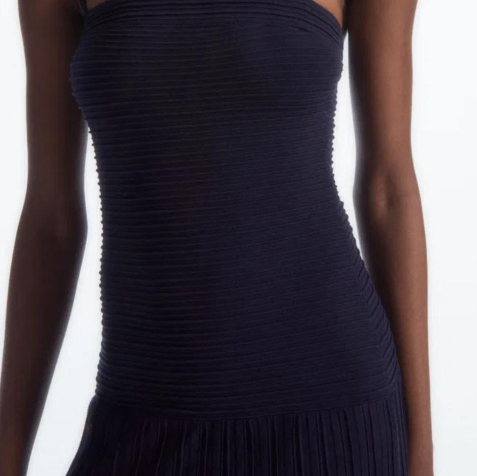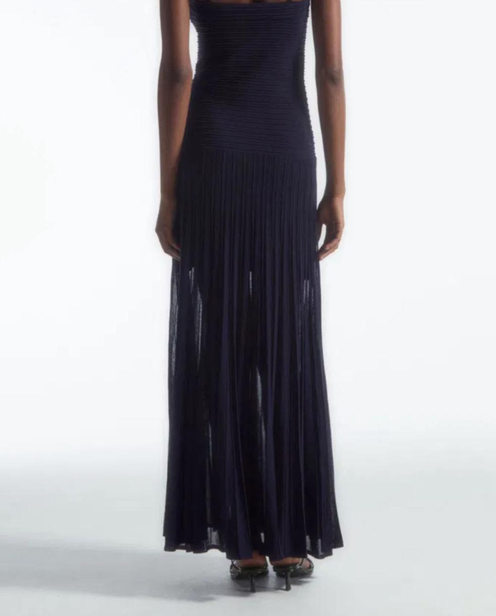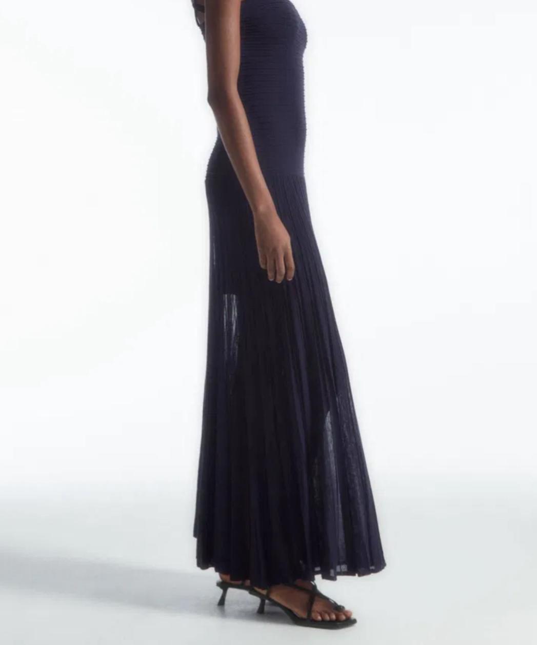 COS PLEATED KNITTED MAXI DRESS IN COLOR BLACK