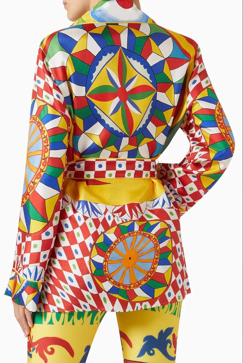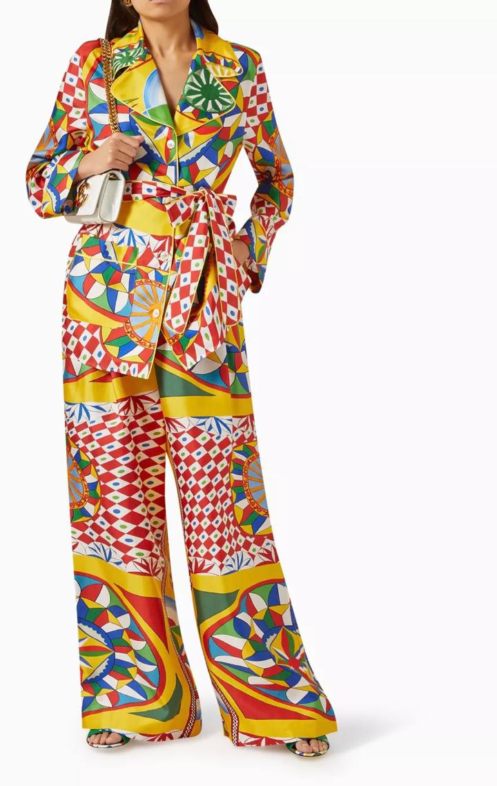 Make a bold statement with this luxurious women’s suit featuring vibrant geometric patterns inspired by Mediterranean artistry. This two-piece ensemble combines modern elegance with comfort, crafted from silky, high-quality fabric that feels soft against the skin.