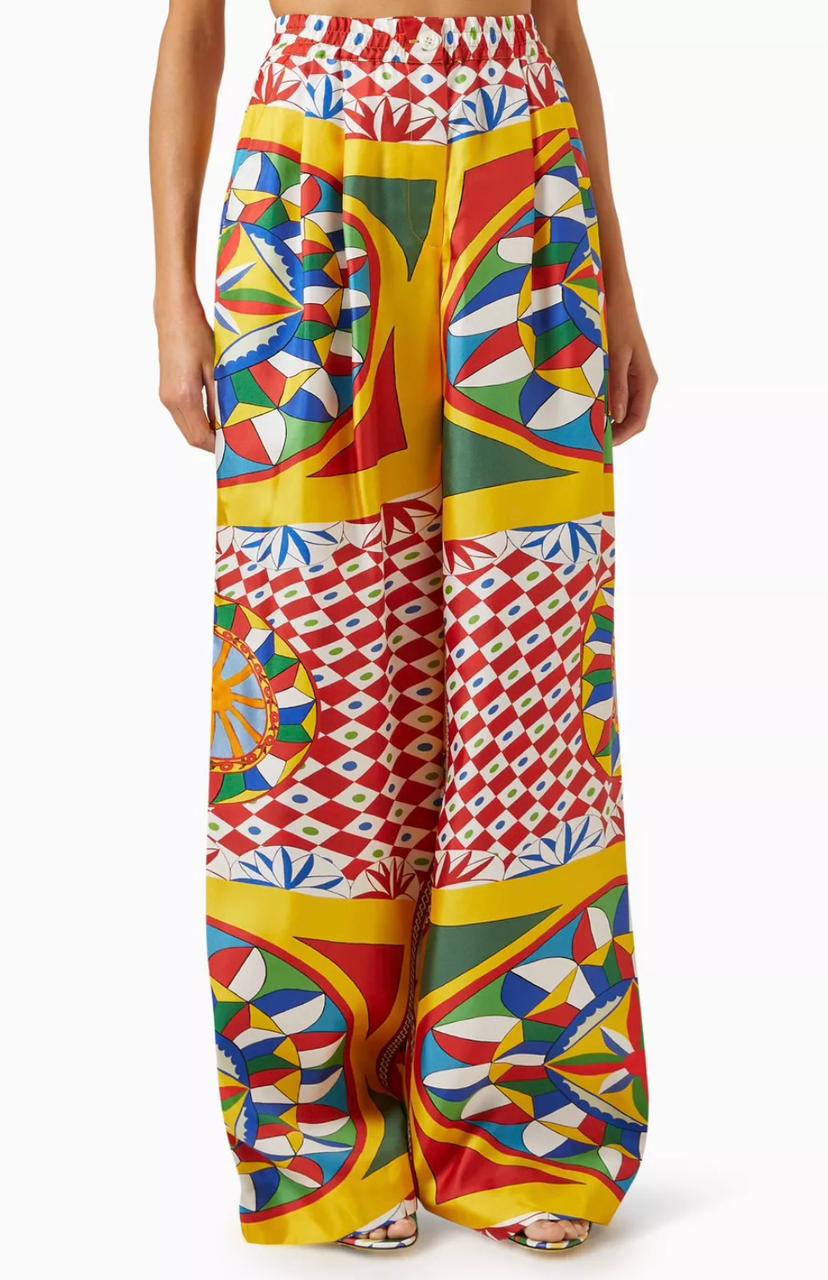 Color: A striking mix of yellow, red, green, and blue in bold geometric motifs