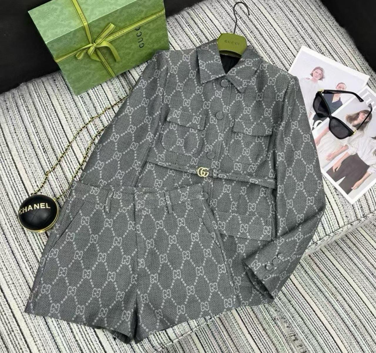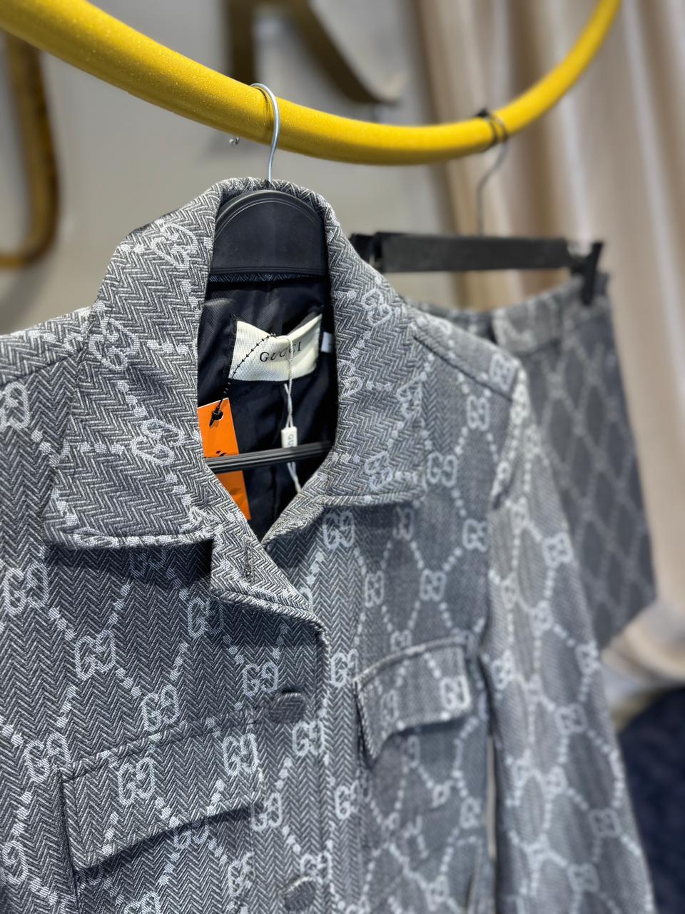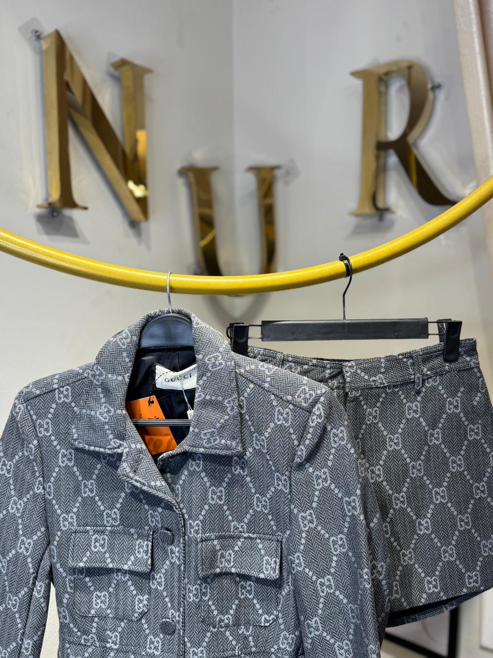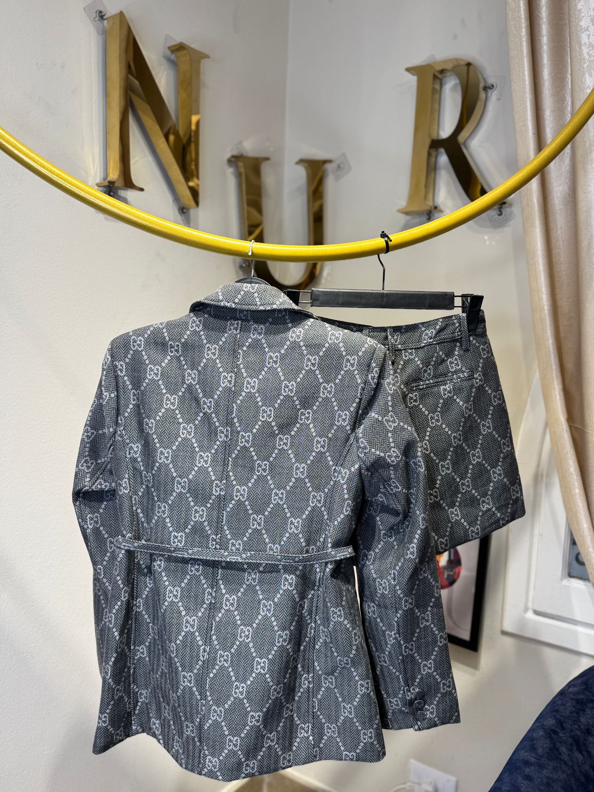 GUCCI FORMAL SET WITH LOGO PRINTED DETAIL IN GRAY