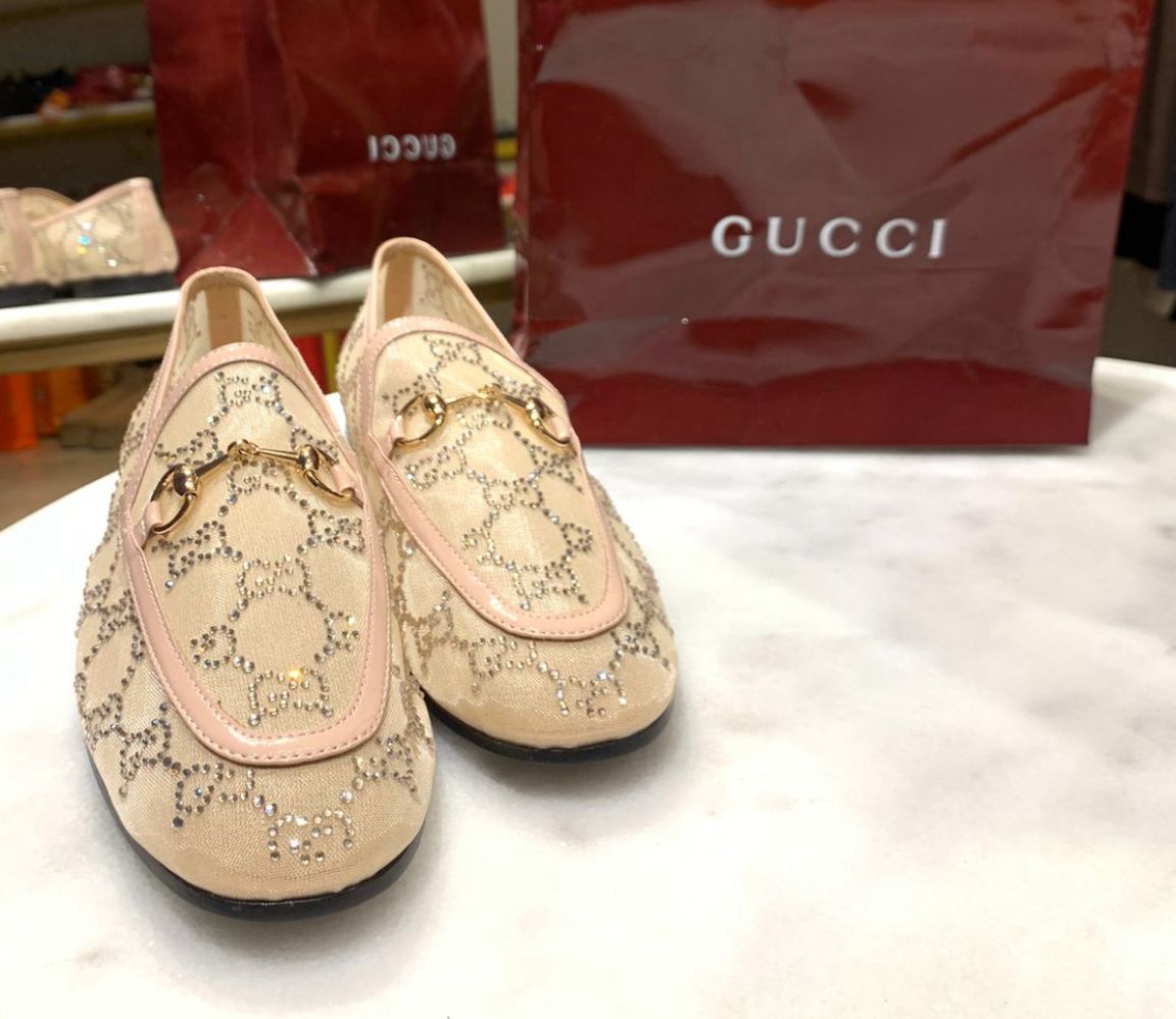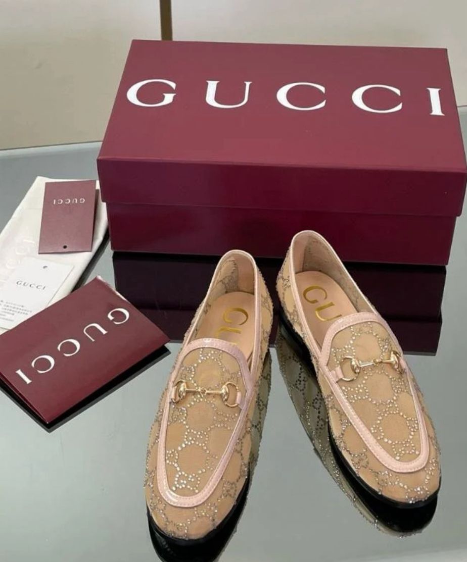 WOMEN GG CRYSTAL GUCCI GORDAN LOAFER IN BEGIE