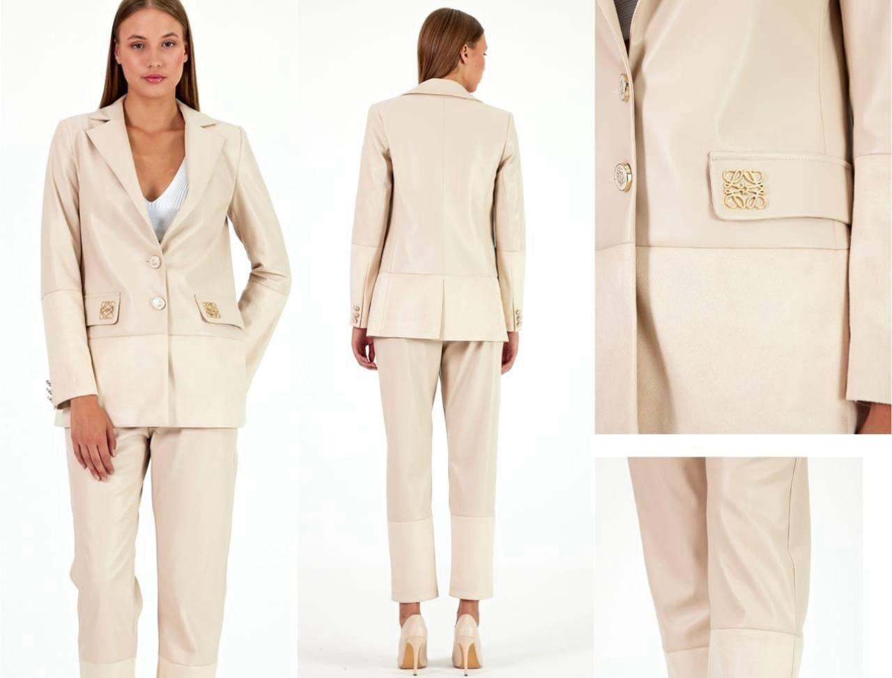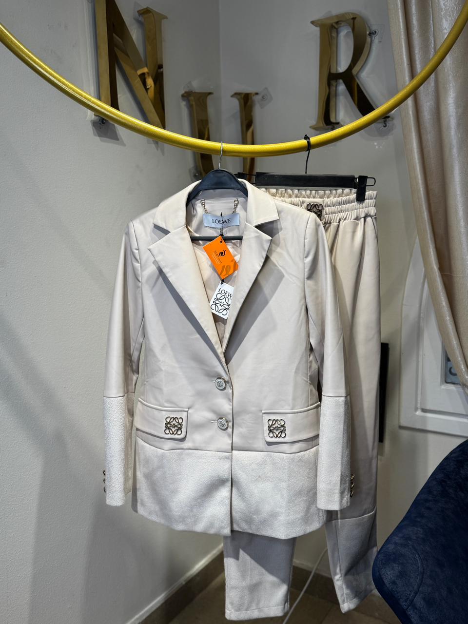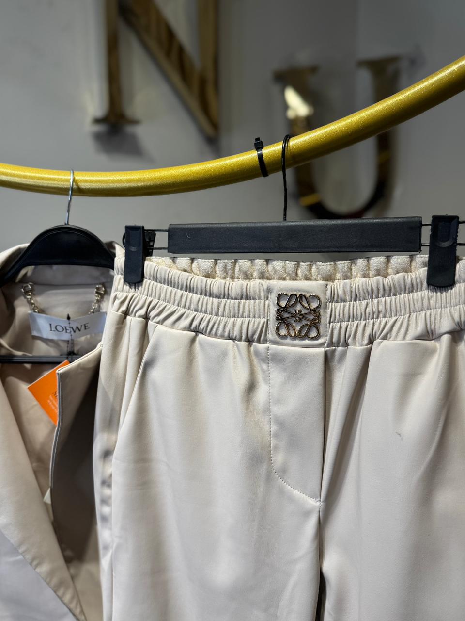 LOEWE BEIGE LEATHER SET WITH GOLD LOGO DETAIL