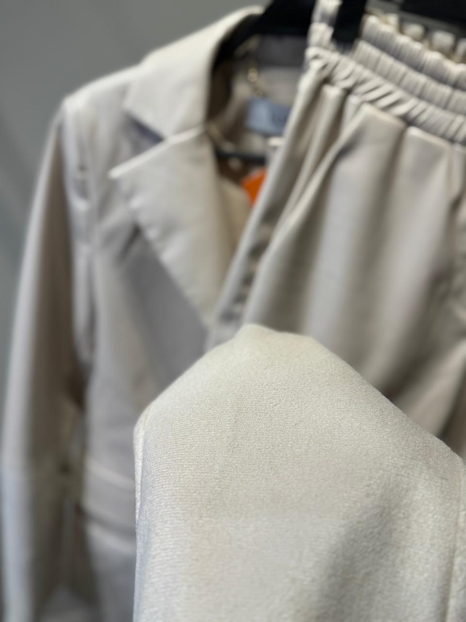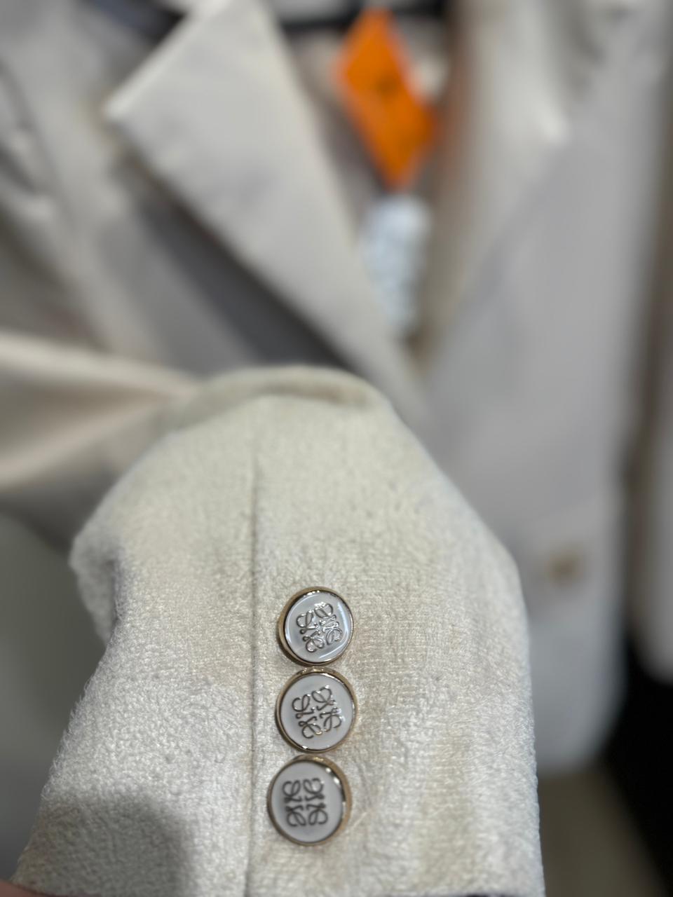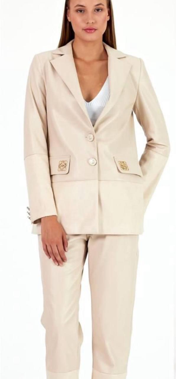 LOEWE BEIGE LEATHER SET WITH GOLD LOGO DETAIL