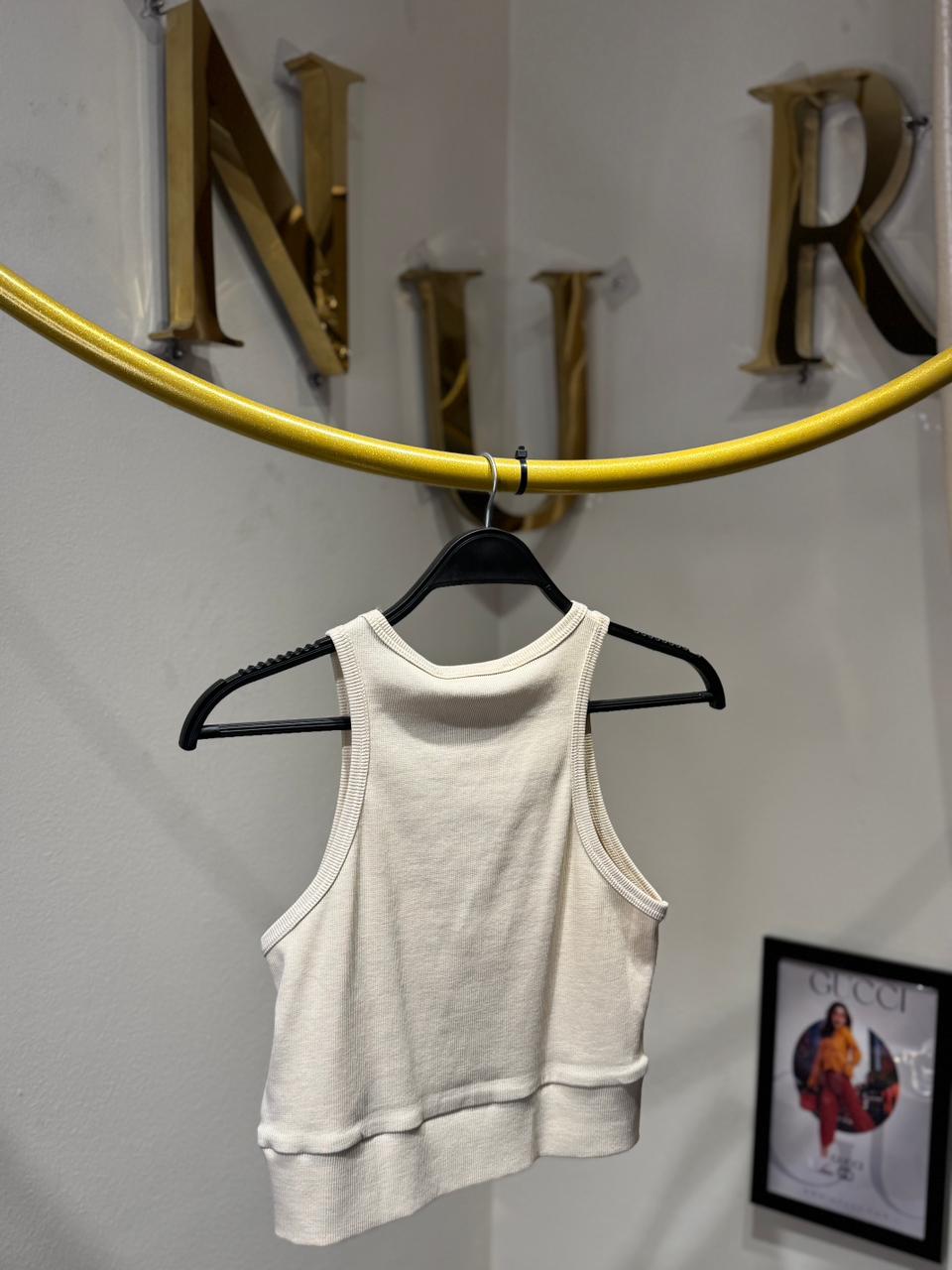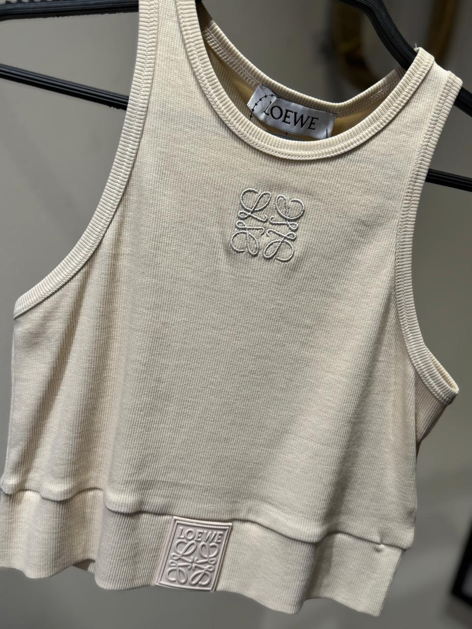 LOEWE CROP TOP WITH LOGO PRINTED DETAIL IN BEIGE