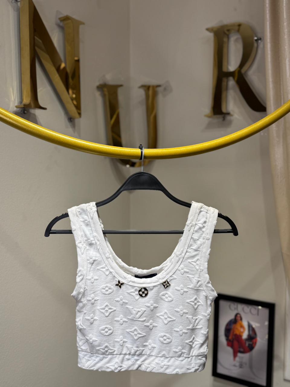 LV CROP TOP WITH LOGO PRINTED DETAIL IN WHITE