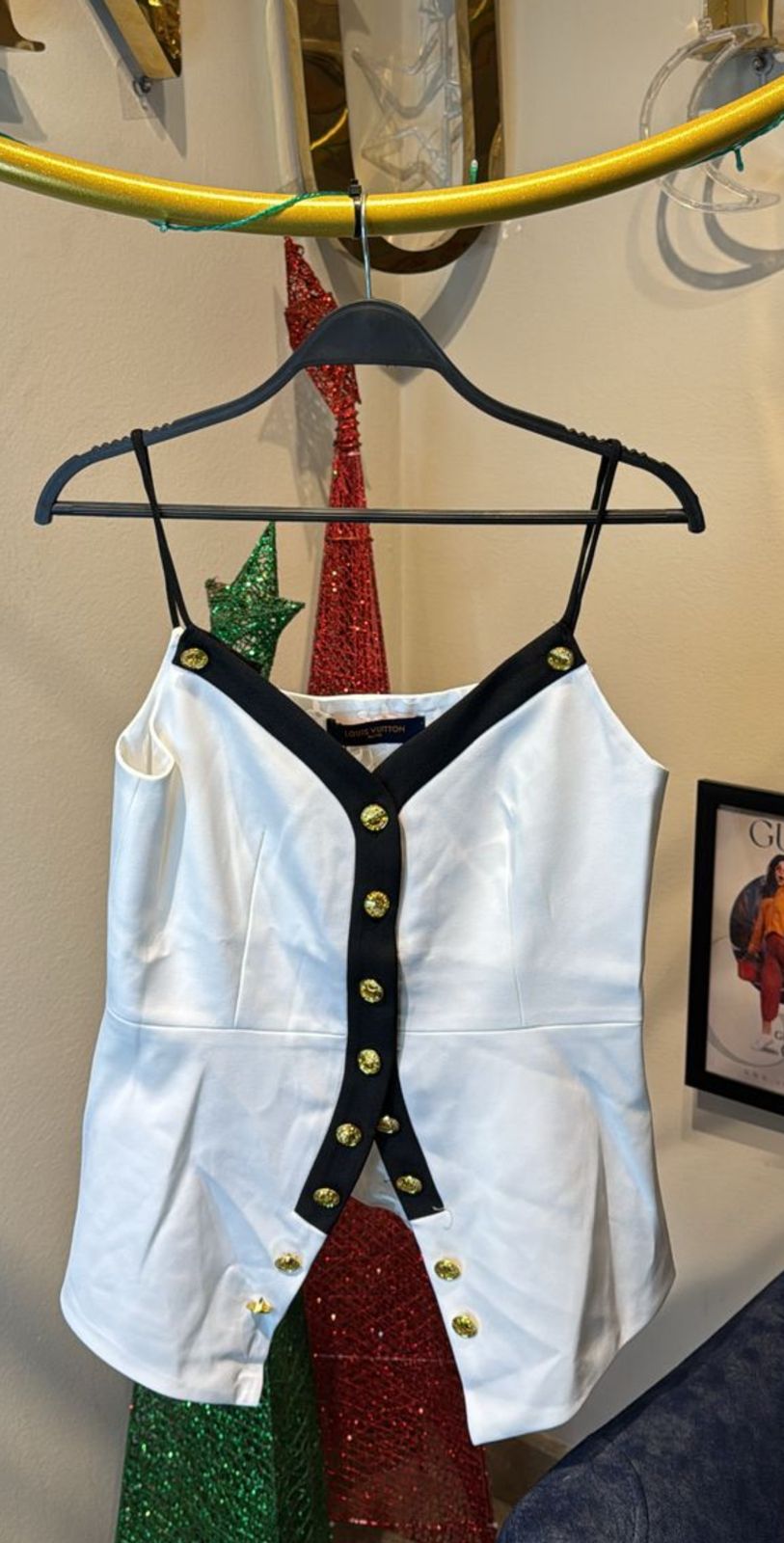 LV TOP WITH BUTTON DETAIL IN WHITE