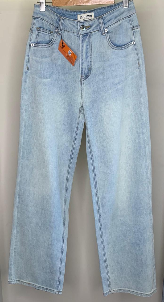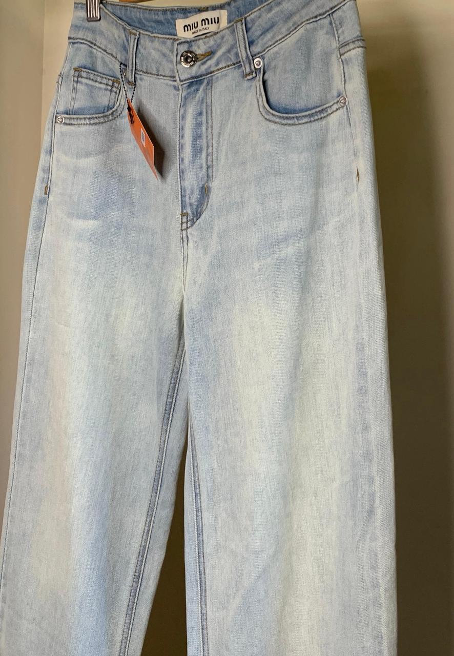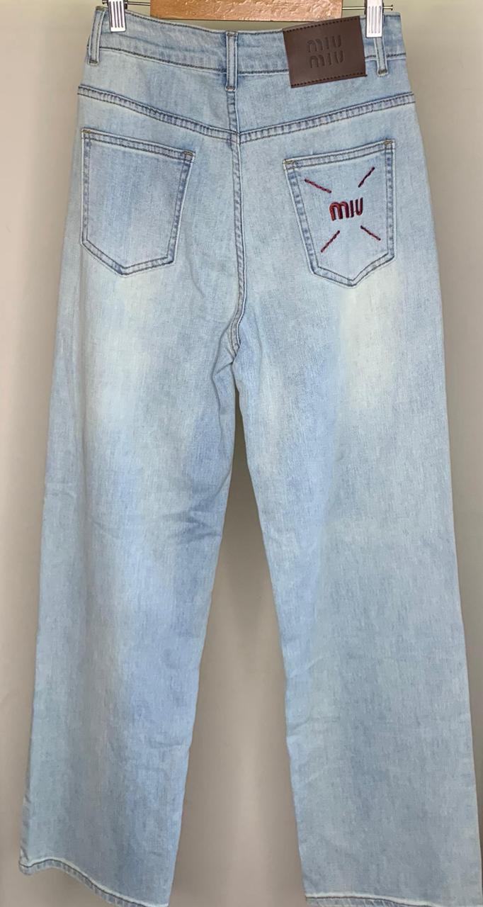 MIU MIU WIDE LEG JEANS WITH BACK POCKET LOGO DETAIL
