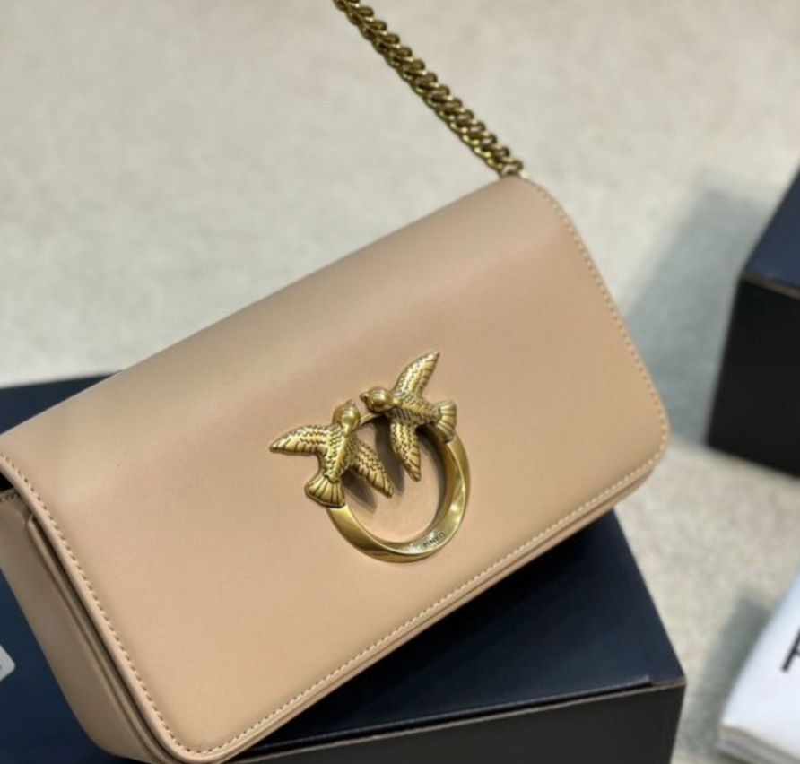 PINKO Classic love leather shoulder bag in nude