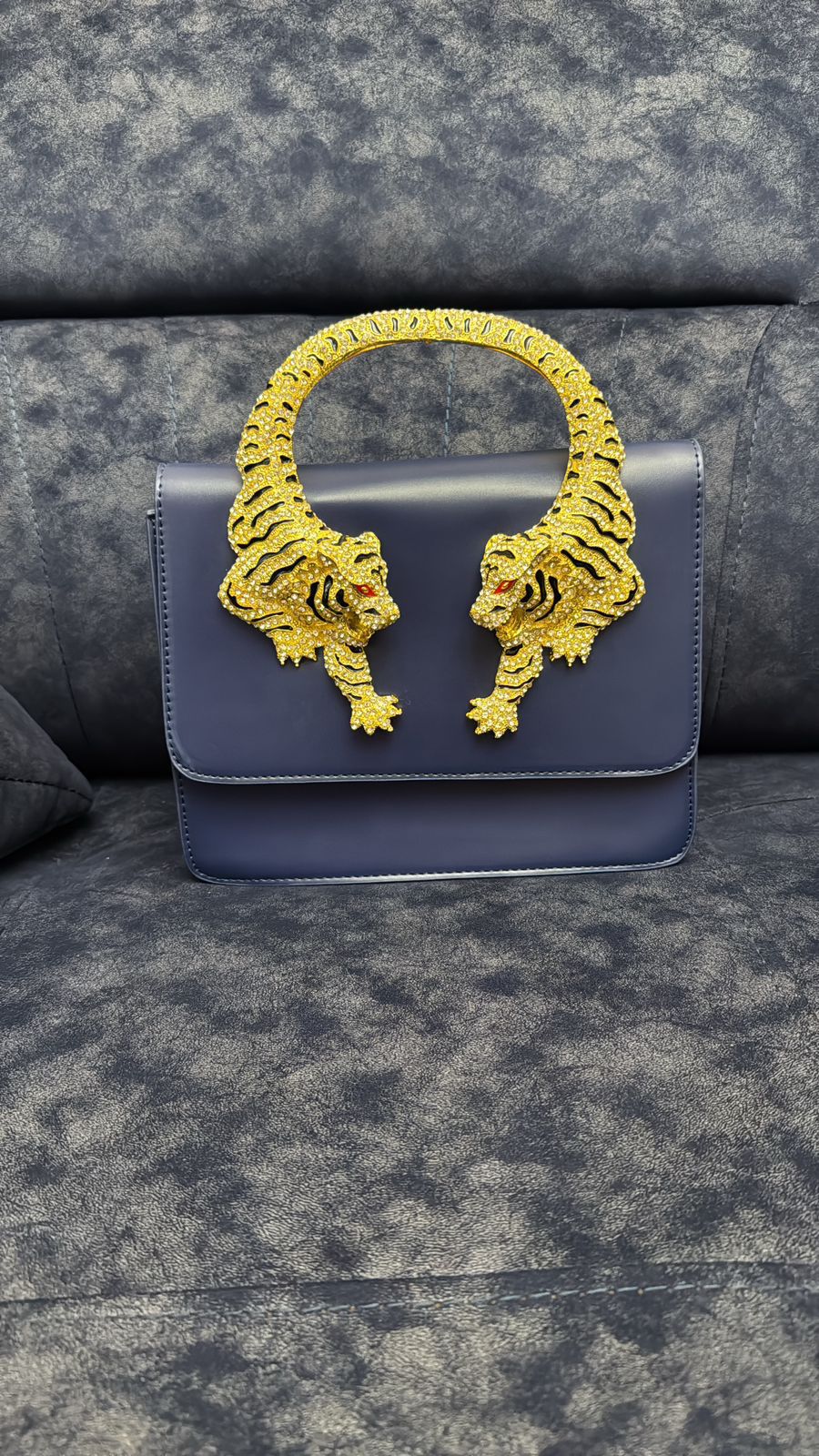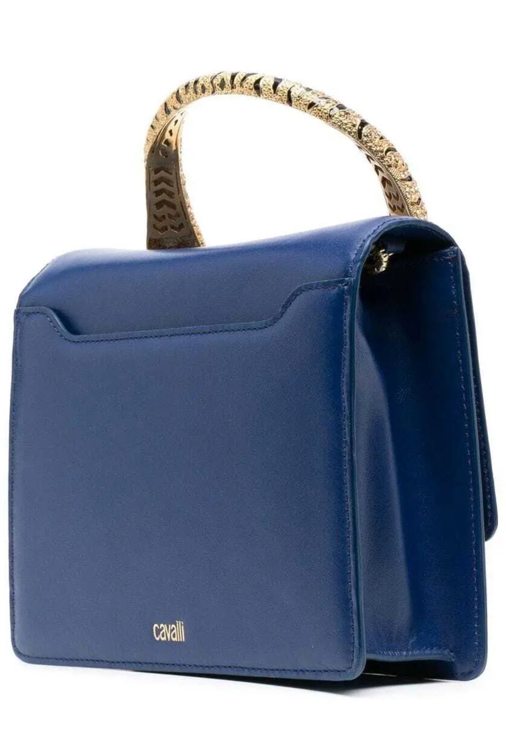 Roberto Cavalli Tiger Handel with gold chain in navy blue