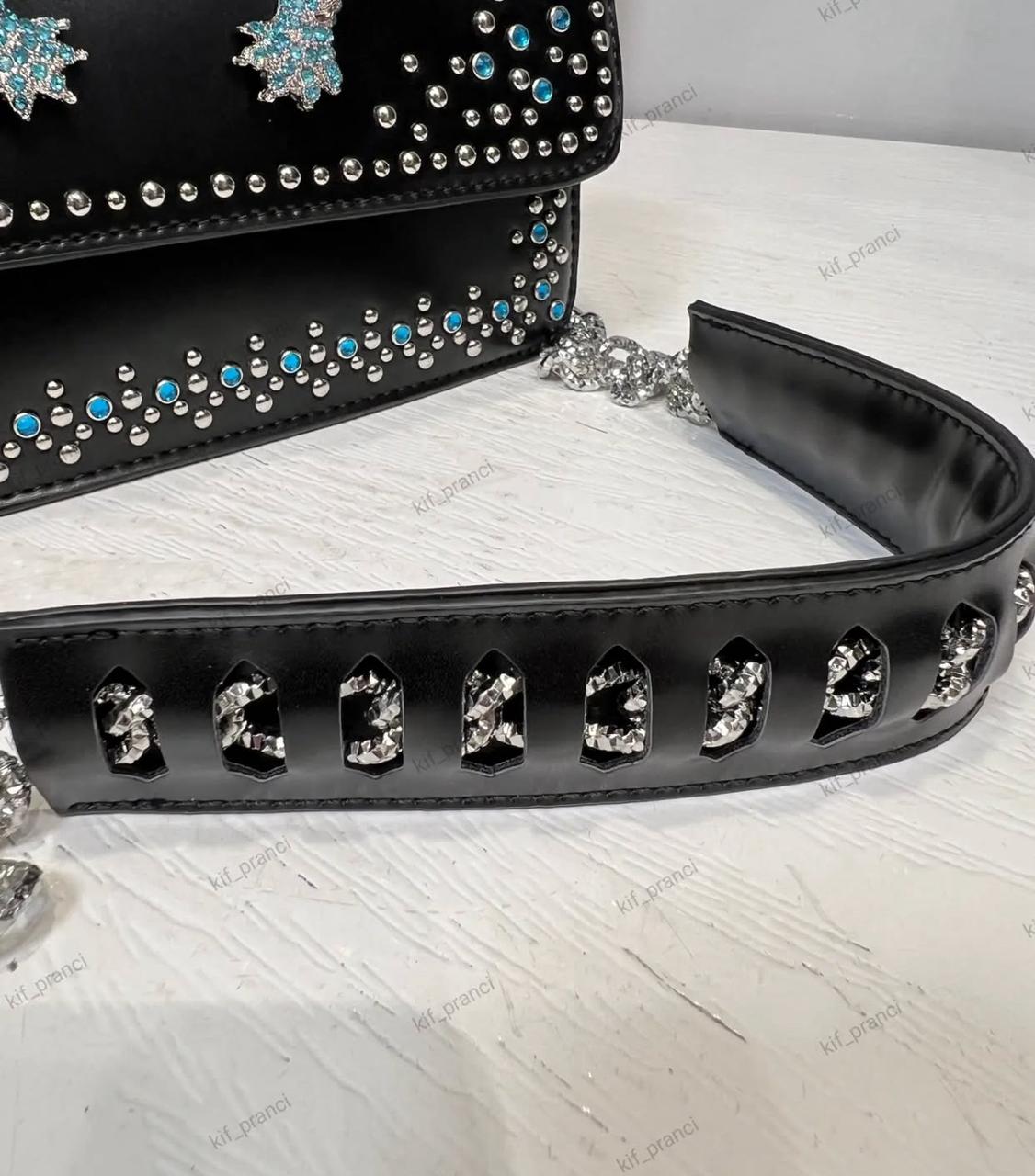 Roberto Cavalli Tiger Handel with silver chain in black with crystals
