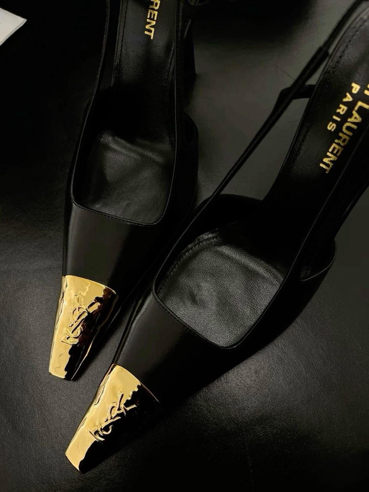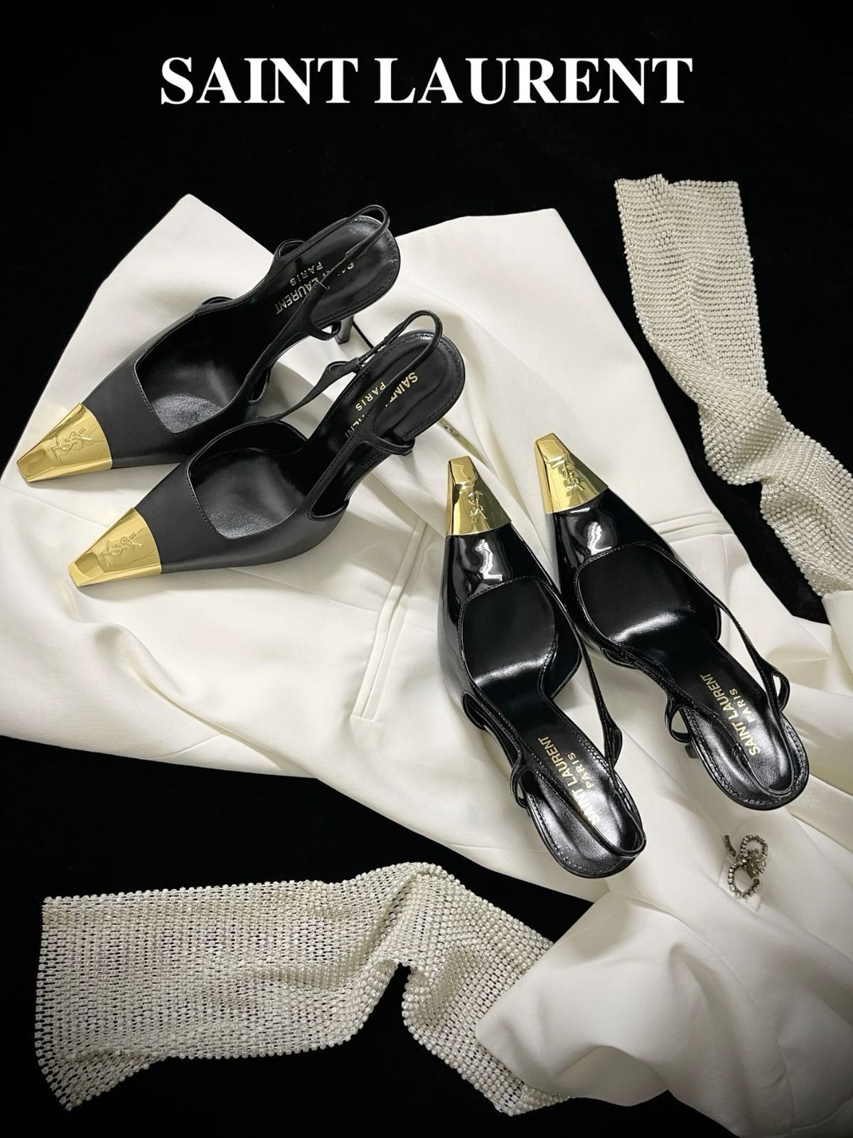 SAINT LAURENT JEANNE 110 LEATHER SLINGBACK PUMPS IN BLACK