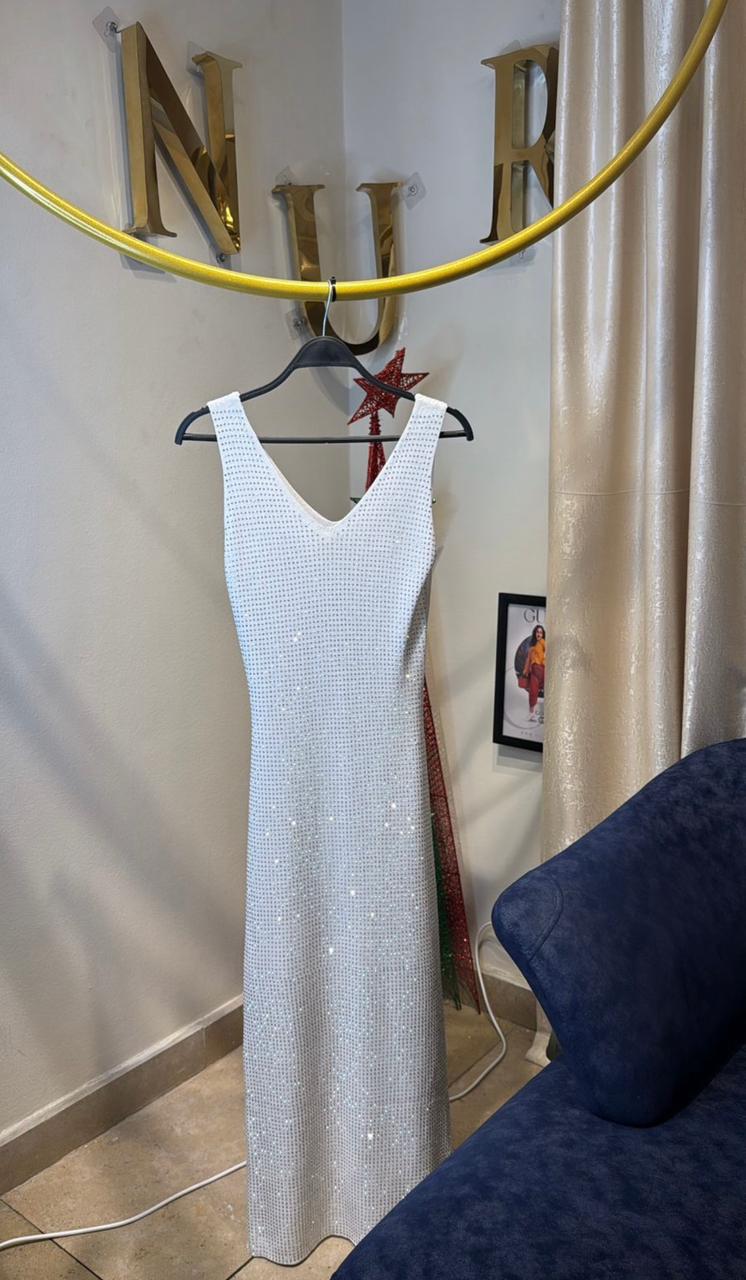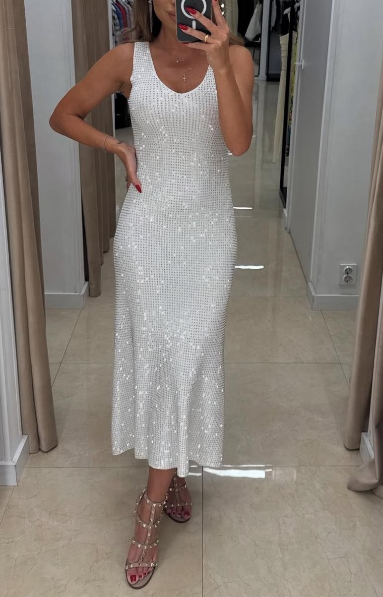 SELF PORTRAIT SLEEVLESS SPARKLY DRESS IN COLOR WHITE