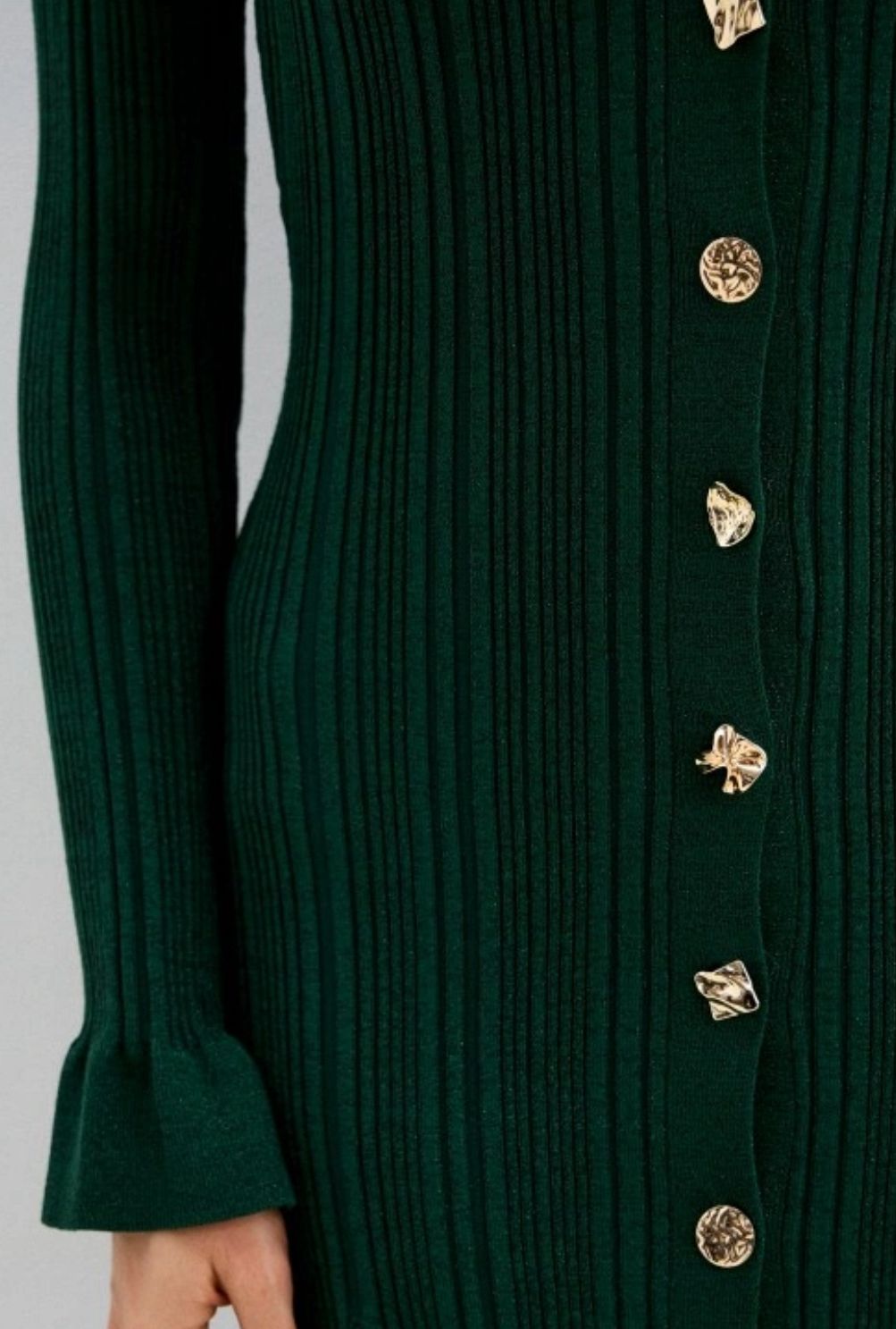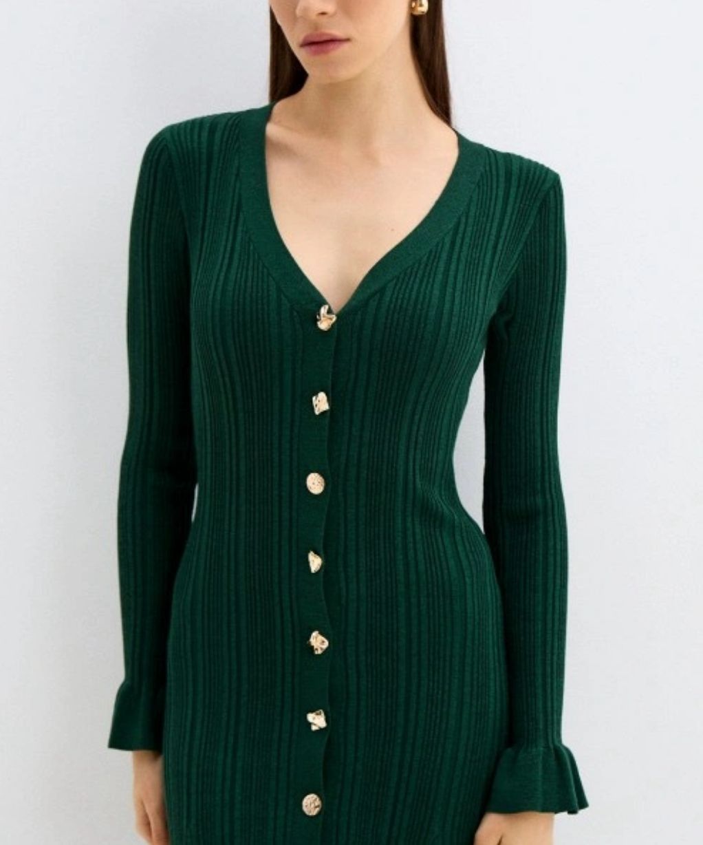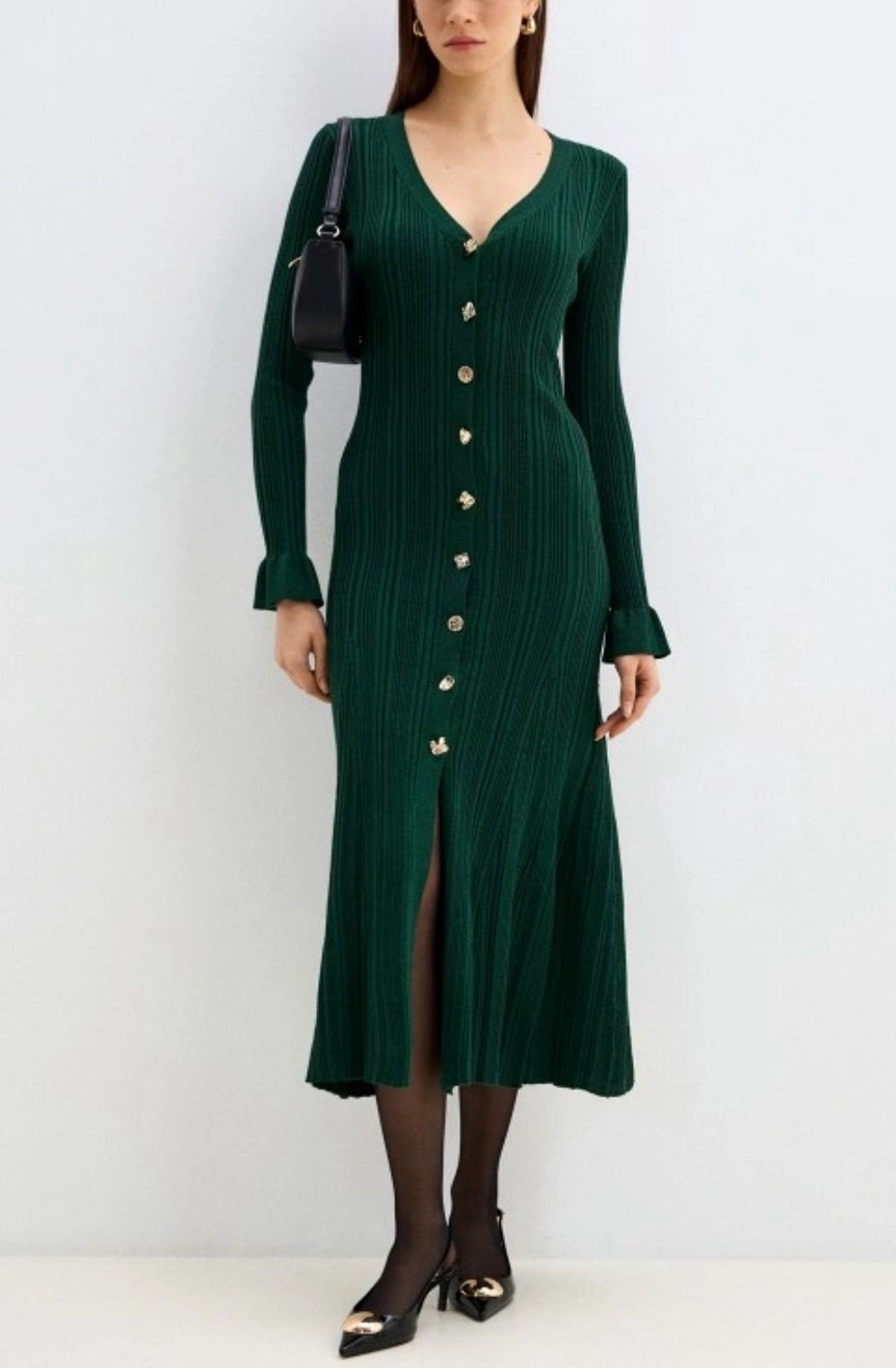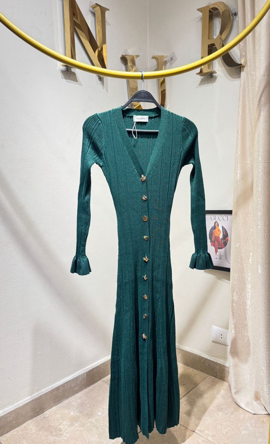 SANDRO LONG DRESS WITH BUTTON DETAILS IN COLOR OLIVE