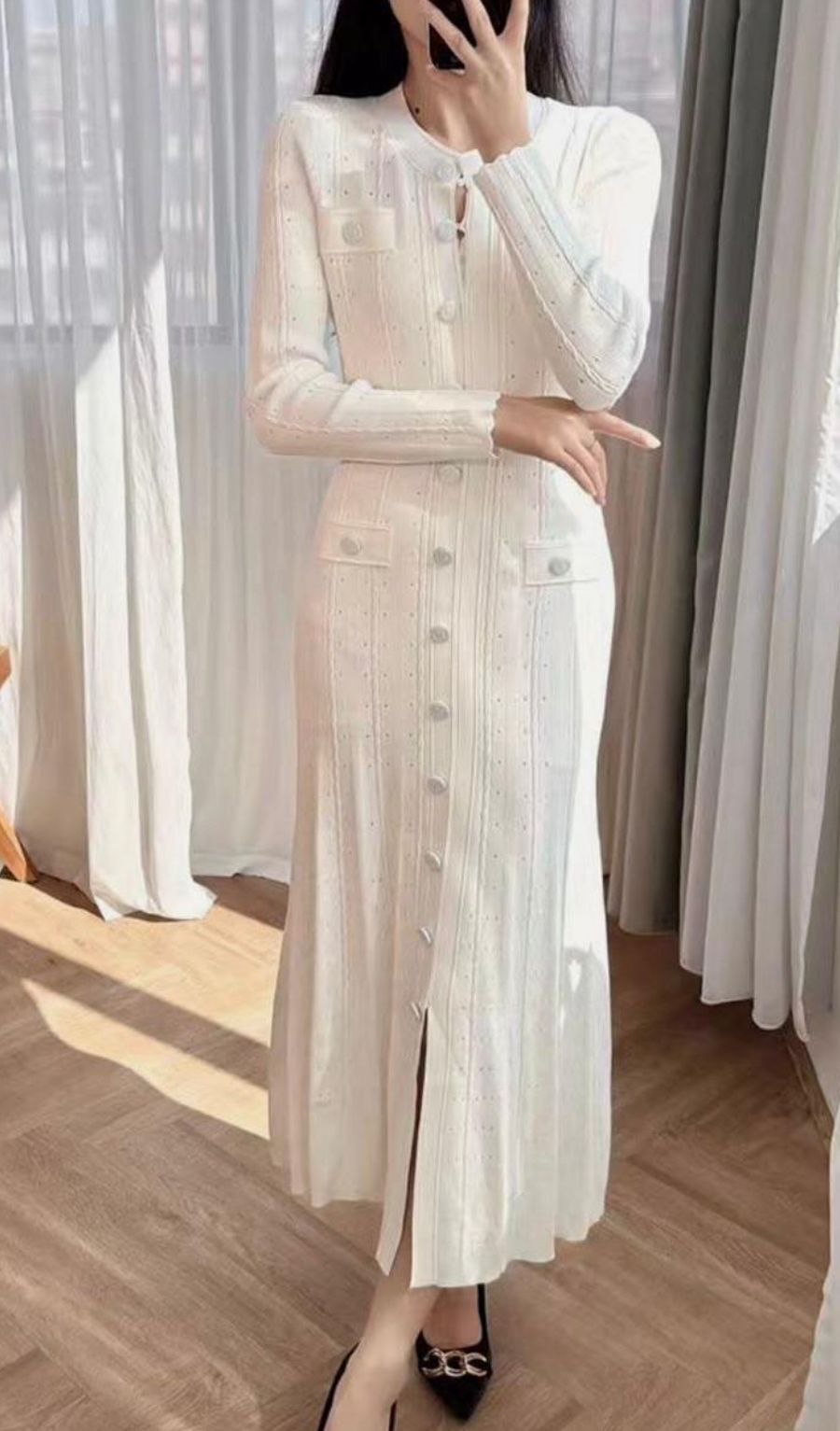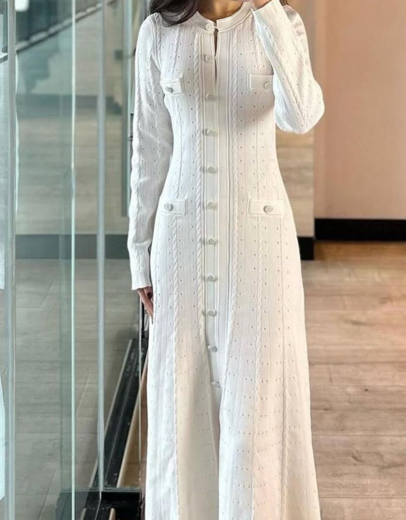 SANDRO CLASSIC LONG MIDI DRESS IN COLOR WHITE