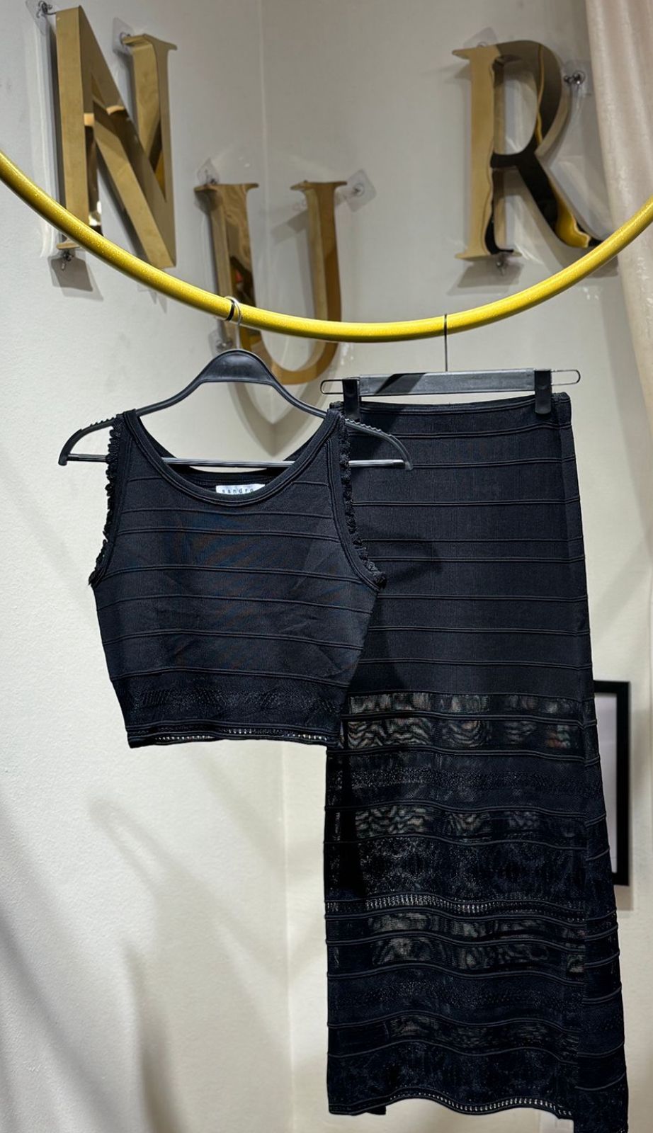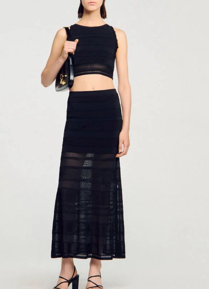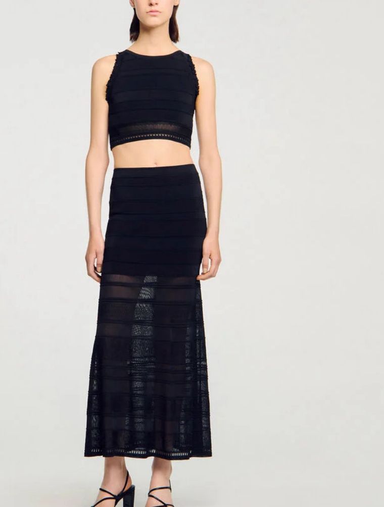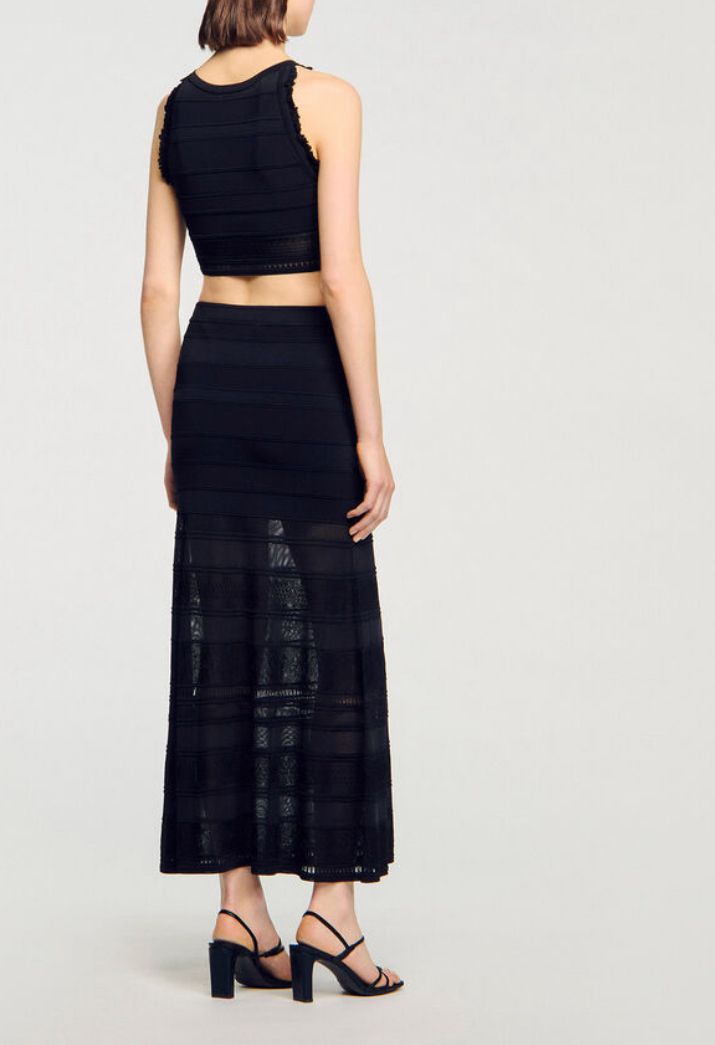 LONG DECORATIVE KNIT SKIRT IN COLOR BLACK