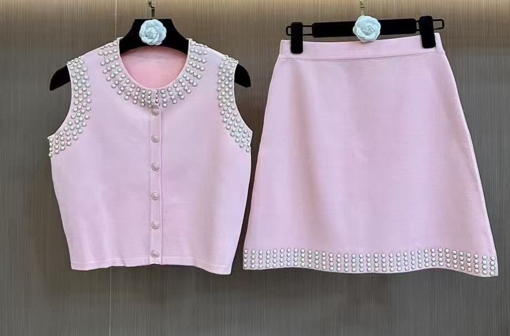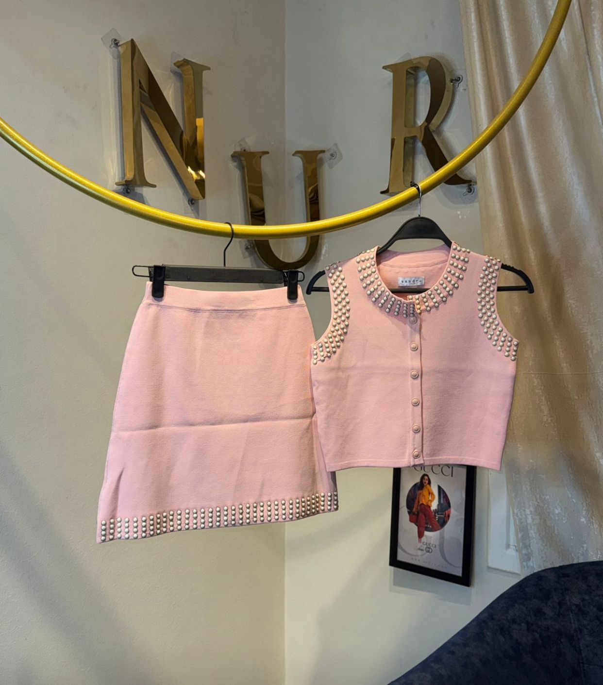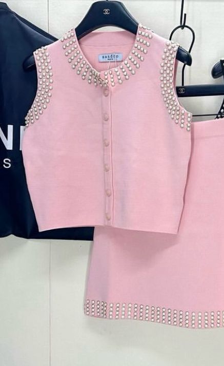 SANDRO SET SKIRT WITH PEARLS DETAILS IN COLOR PINK