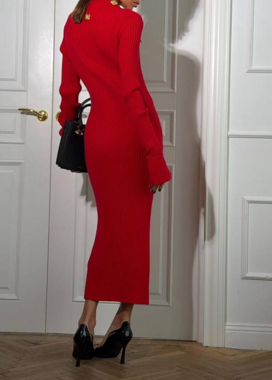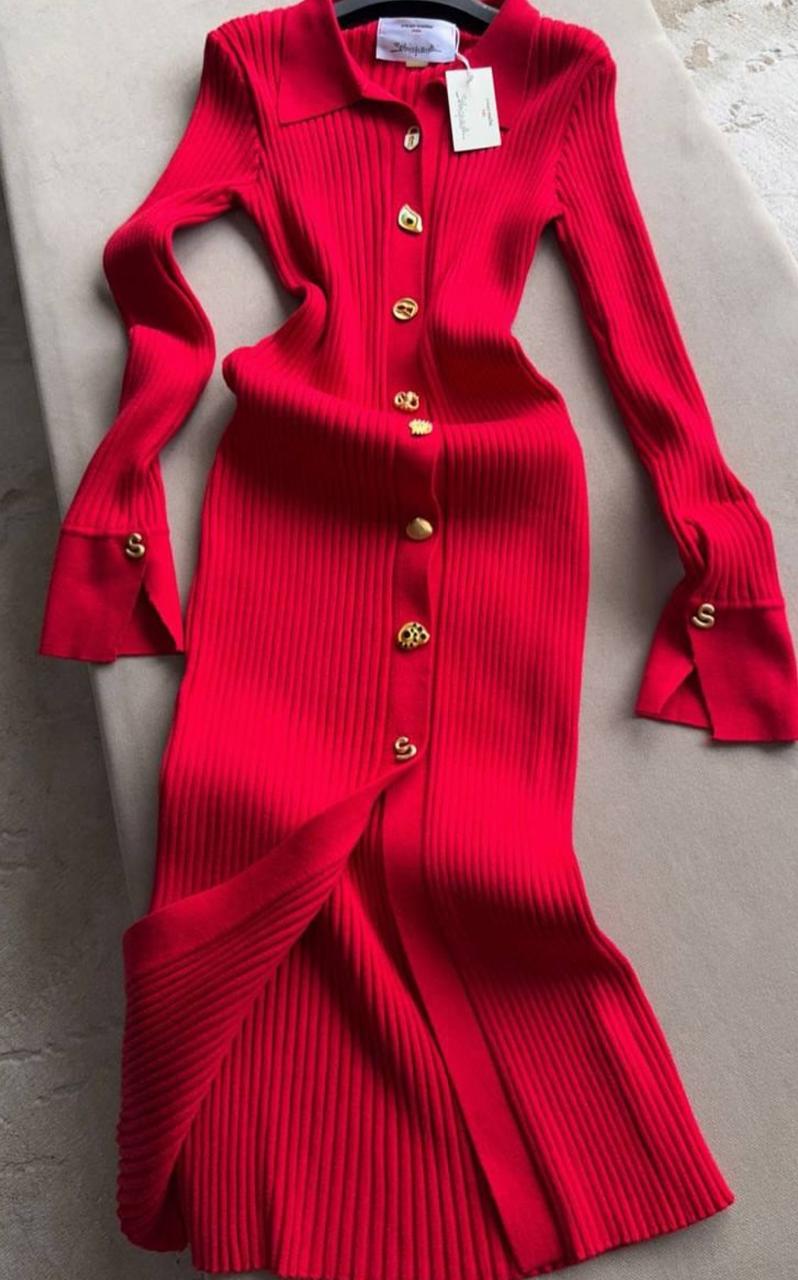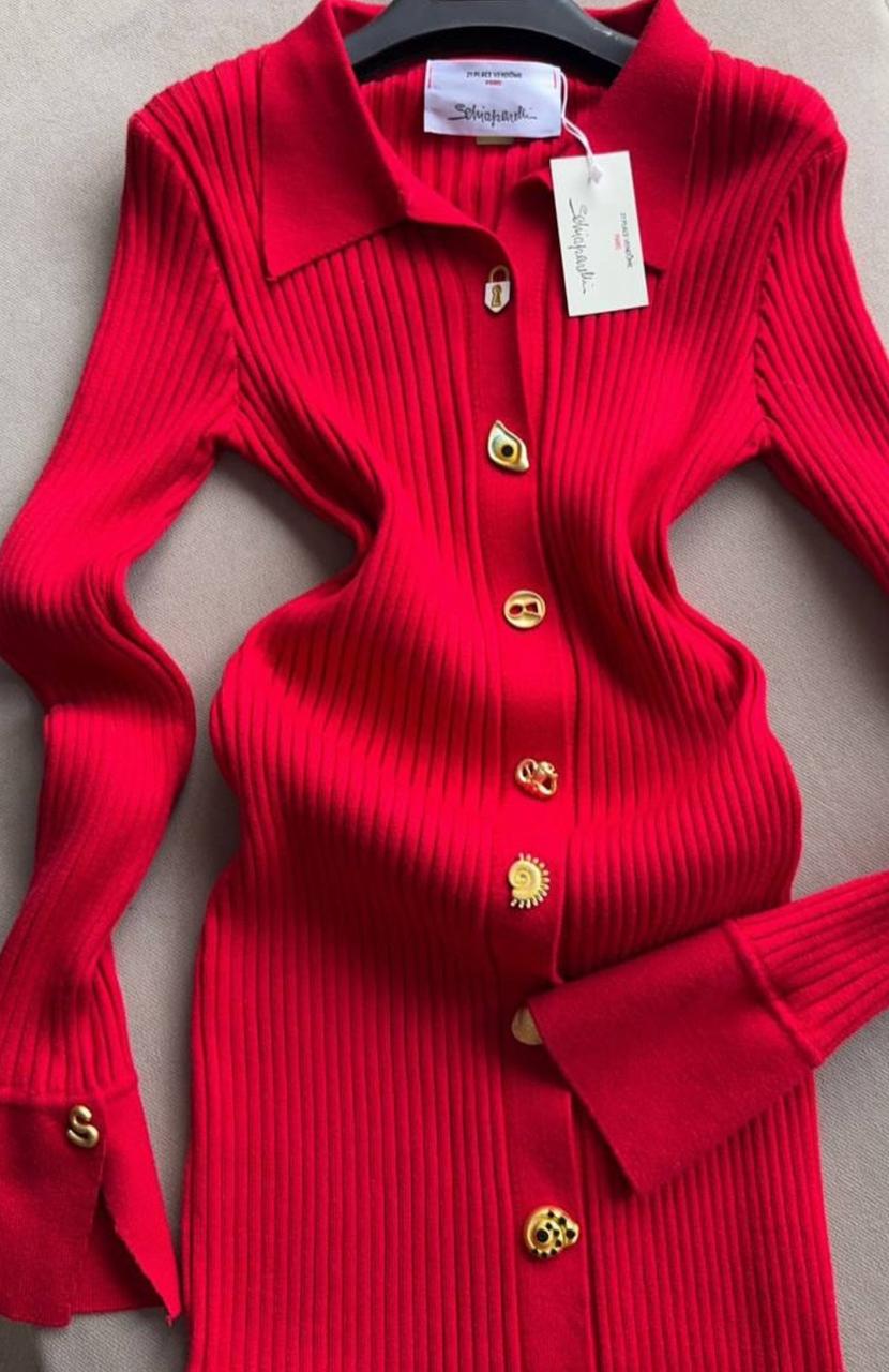 SCHIAPARELLI LONG DRESS WITH BUTTON DETAILS IN COLOR RED