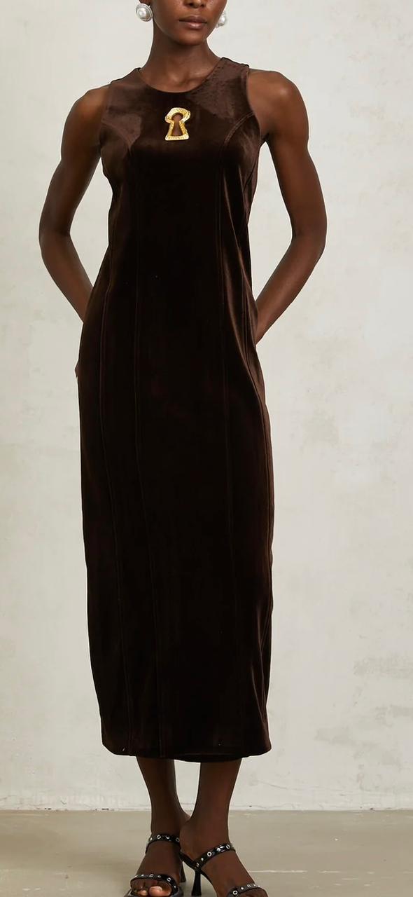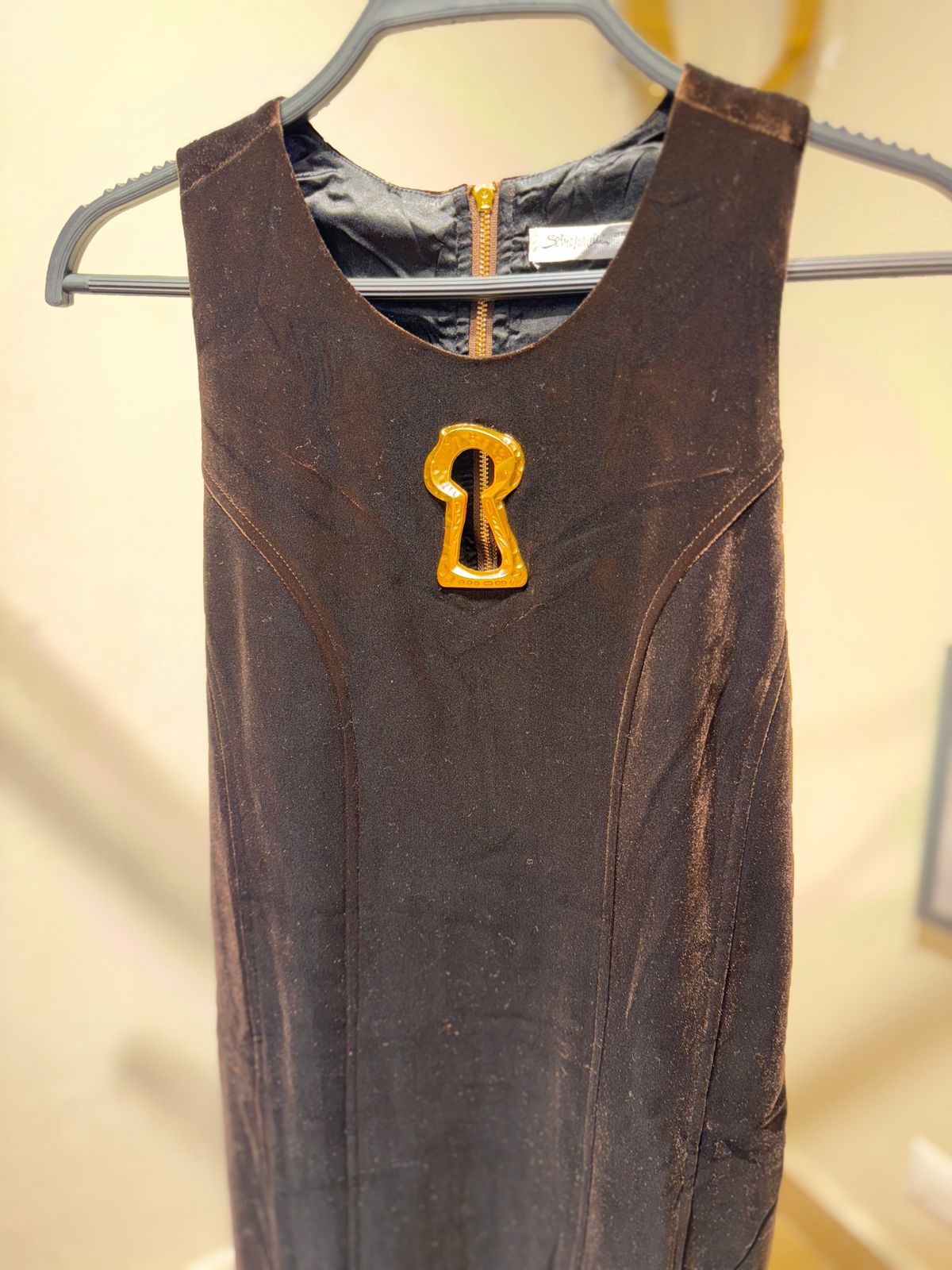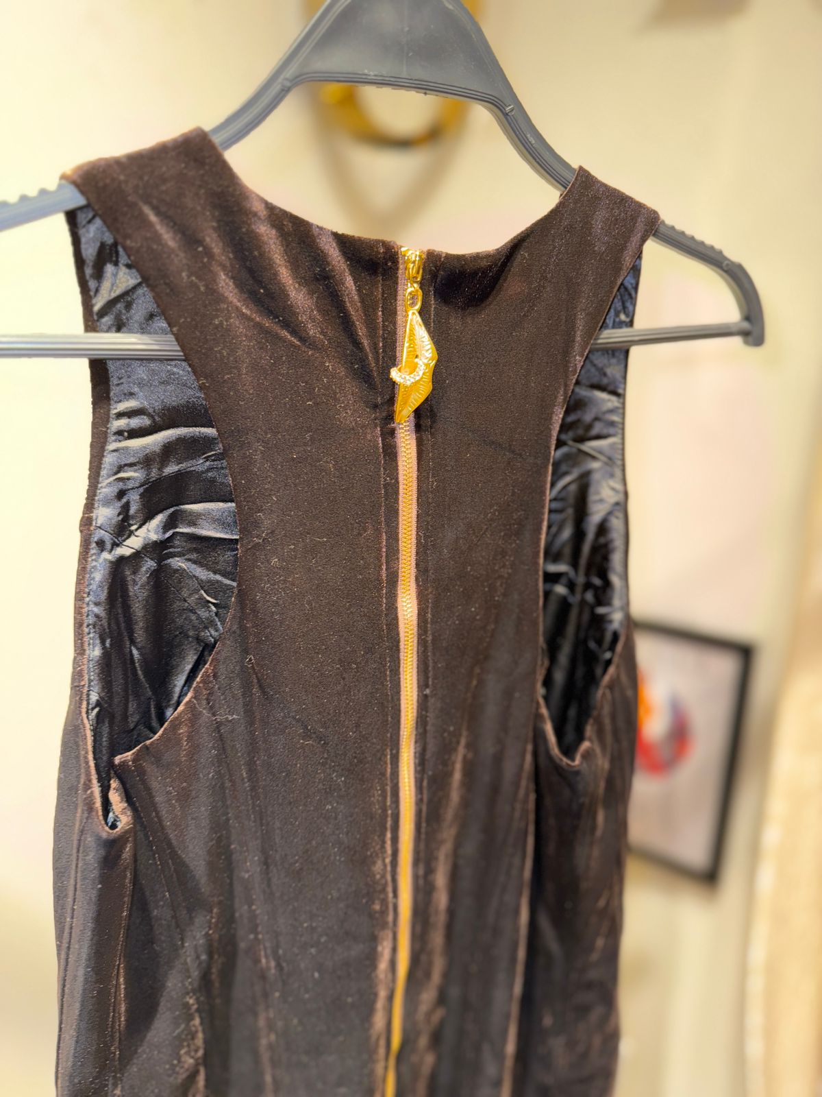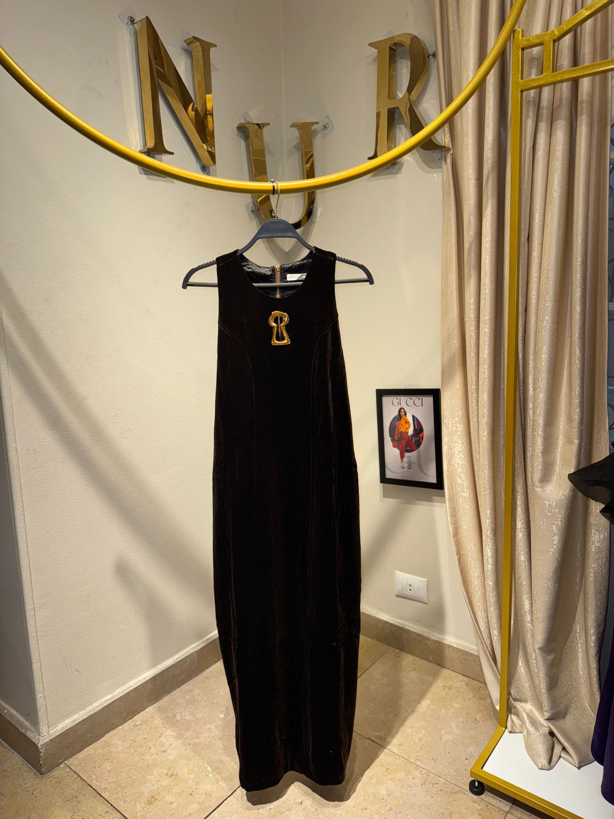 SCHIAPARELLI DRESS WITH LONG BACK ZIPPER IN VELVET BROWN COLOR