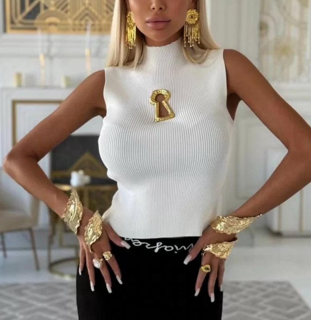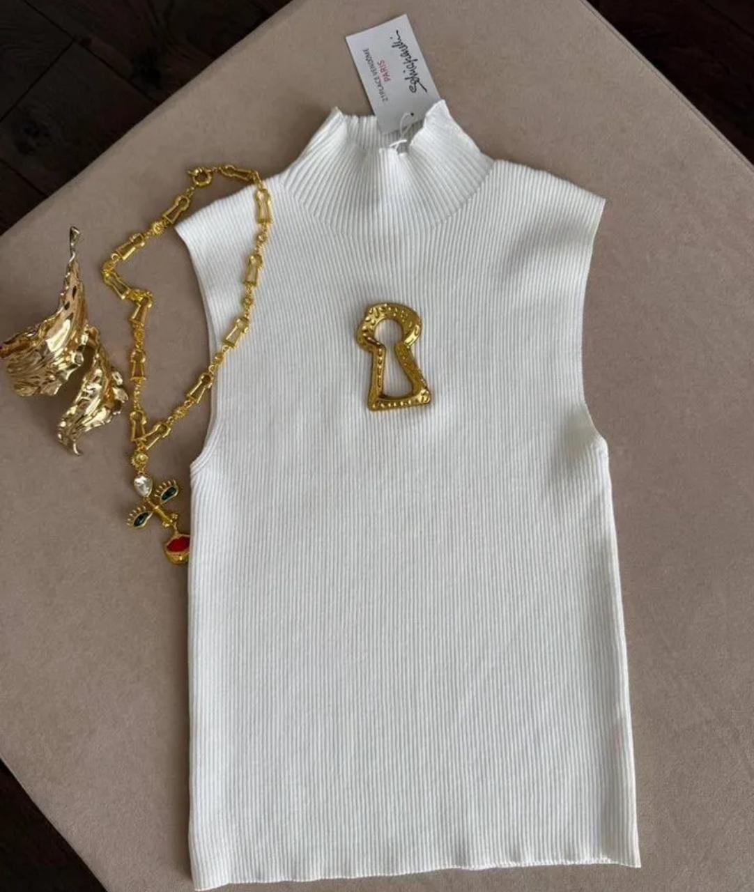 SCHIAPARELLI HIGH NECK SLEEVLESS TOP IN WHITE