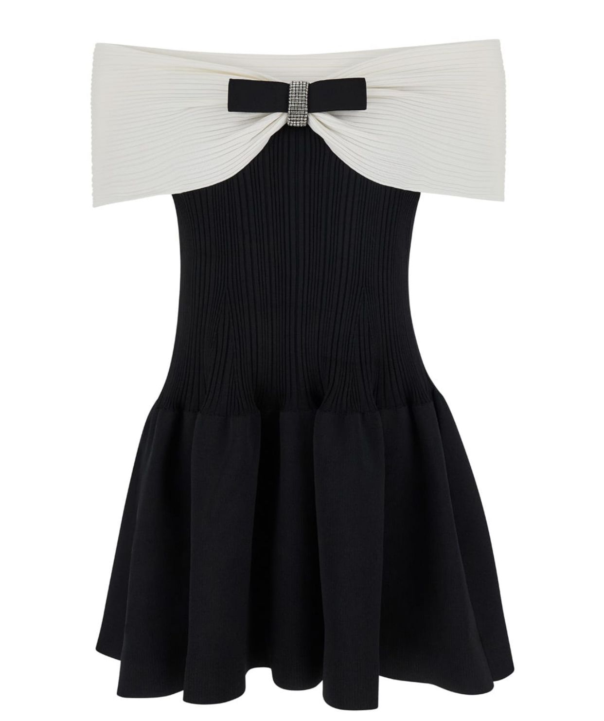 SELF PORTRAIT KNIT BOW MINI DRESS