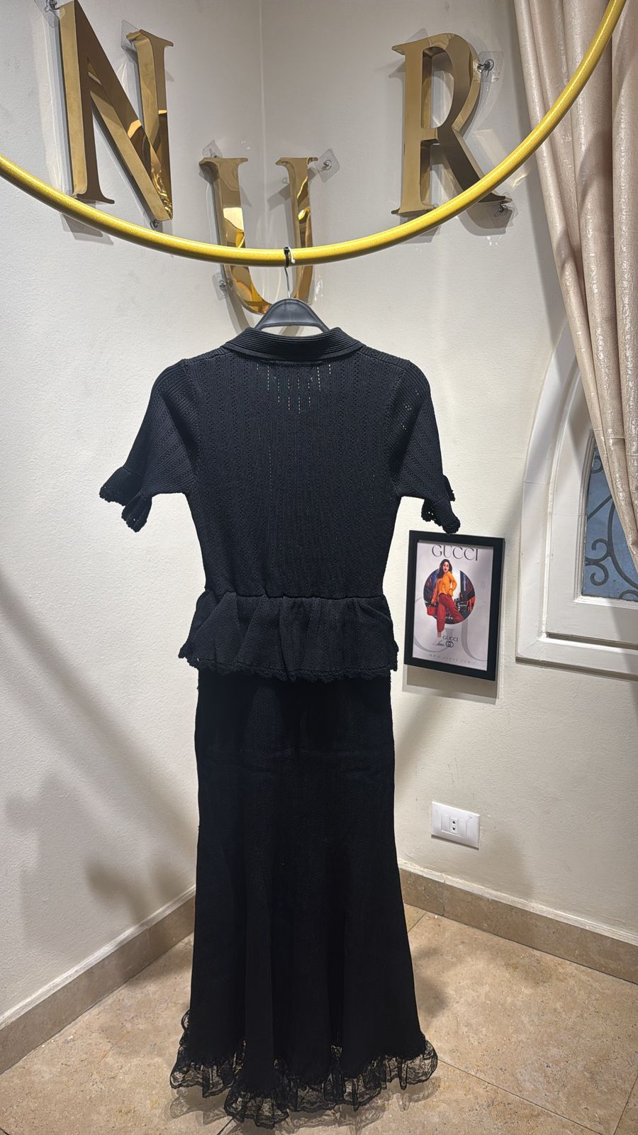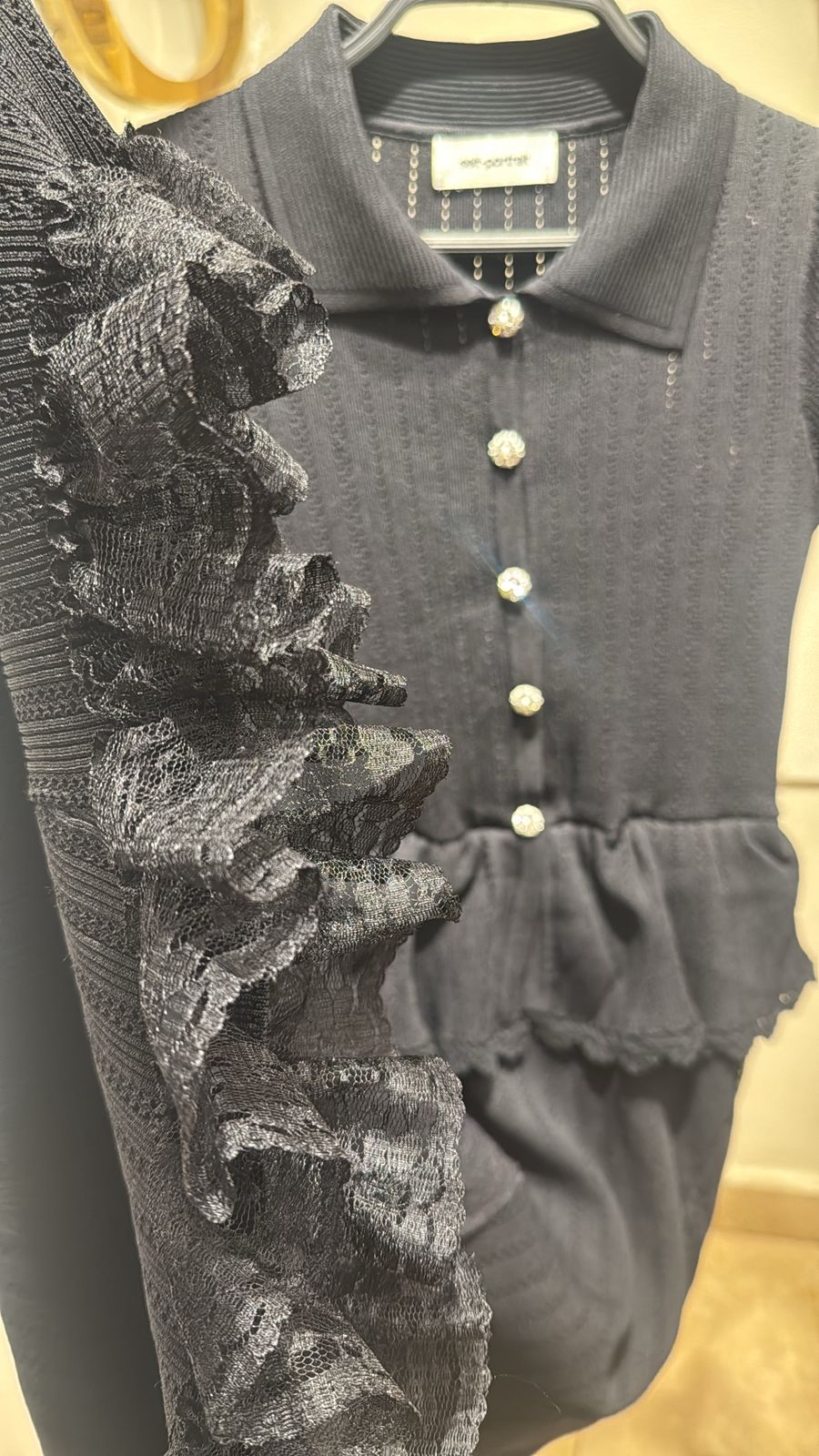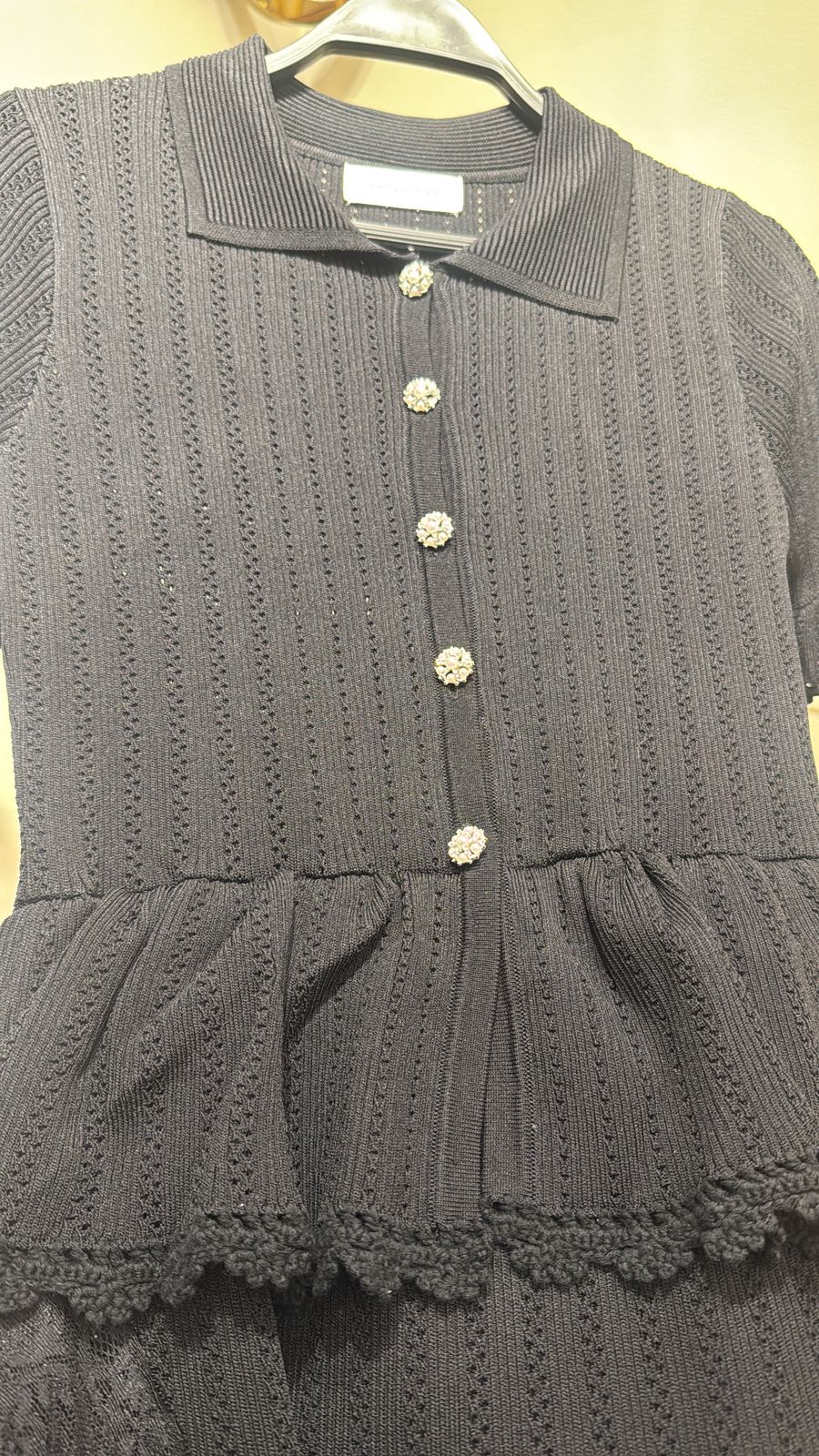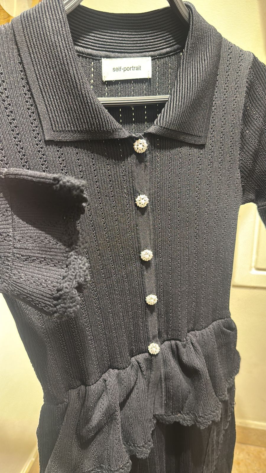 self portrait Pointelle peplum knit midi dress in color black
