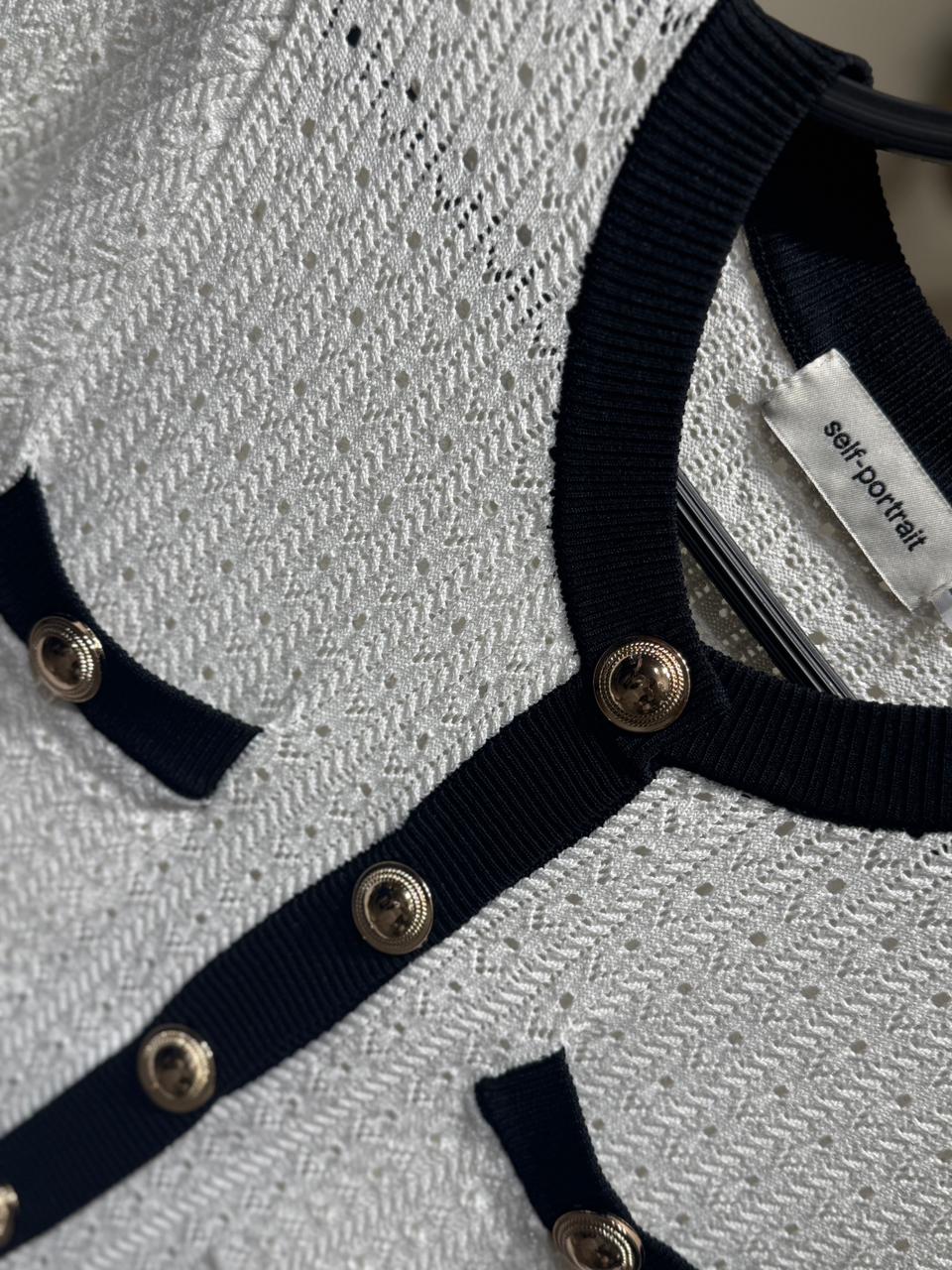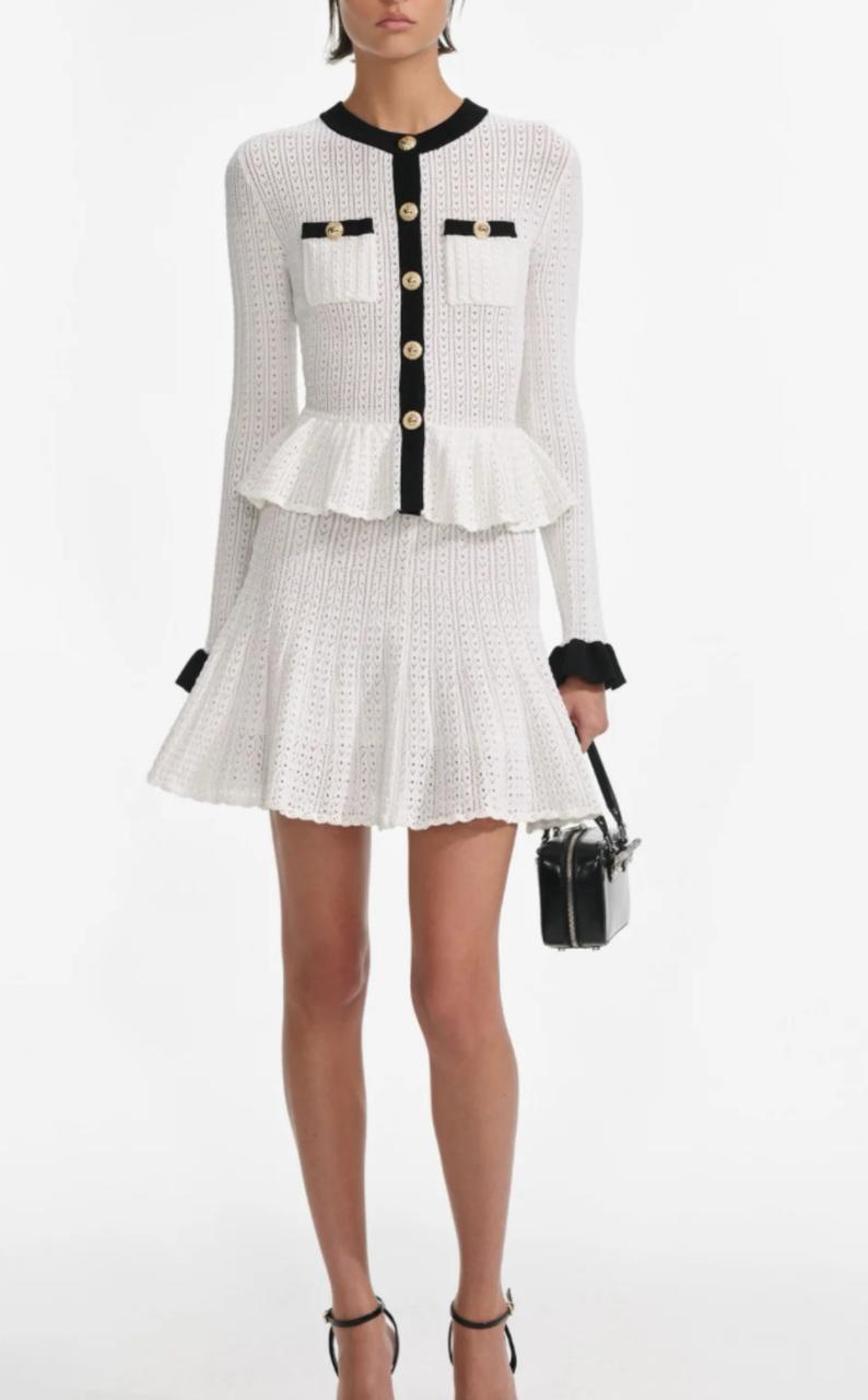 WHITE POINTELLE KNIT CONTRAST MINI DRESS