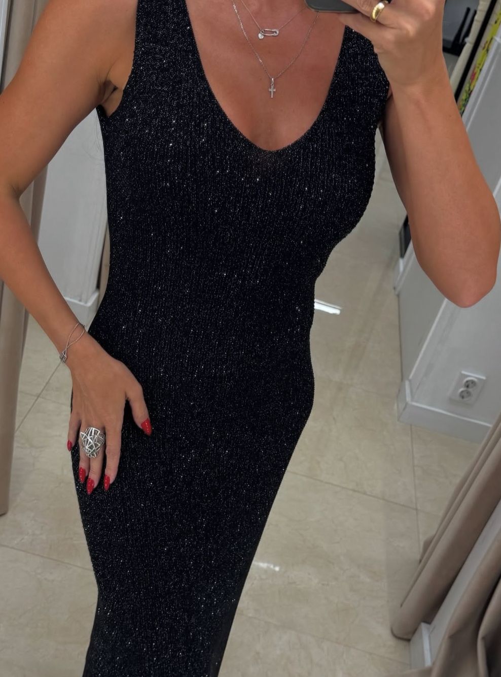 SELF PORTRAIT SLEEVLESS SPARKLY DRESS IN COLOR BLACK