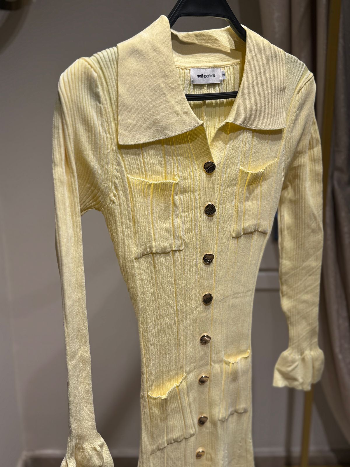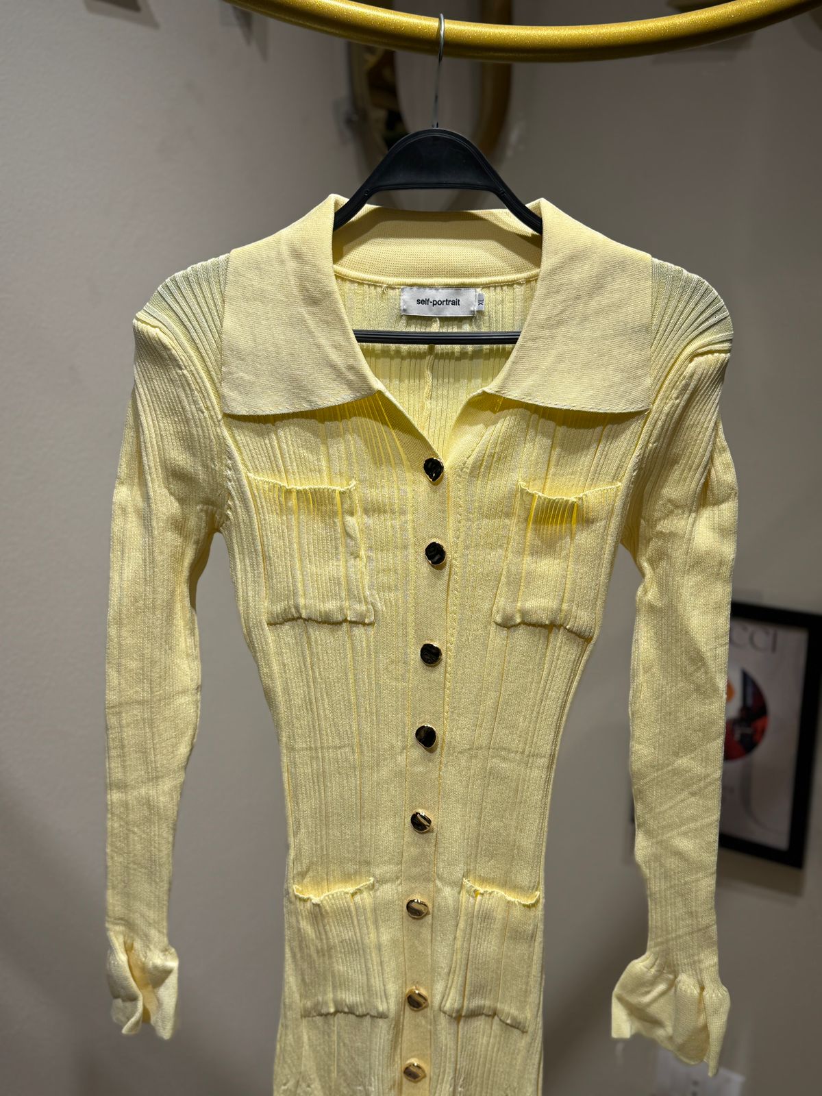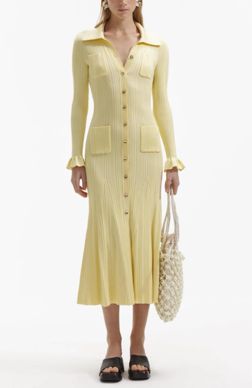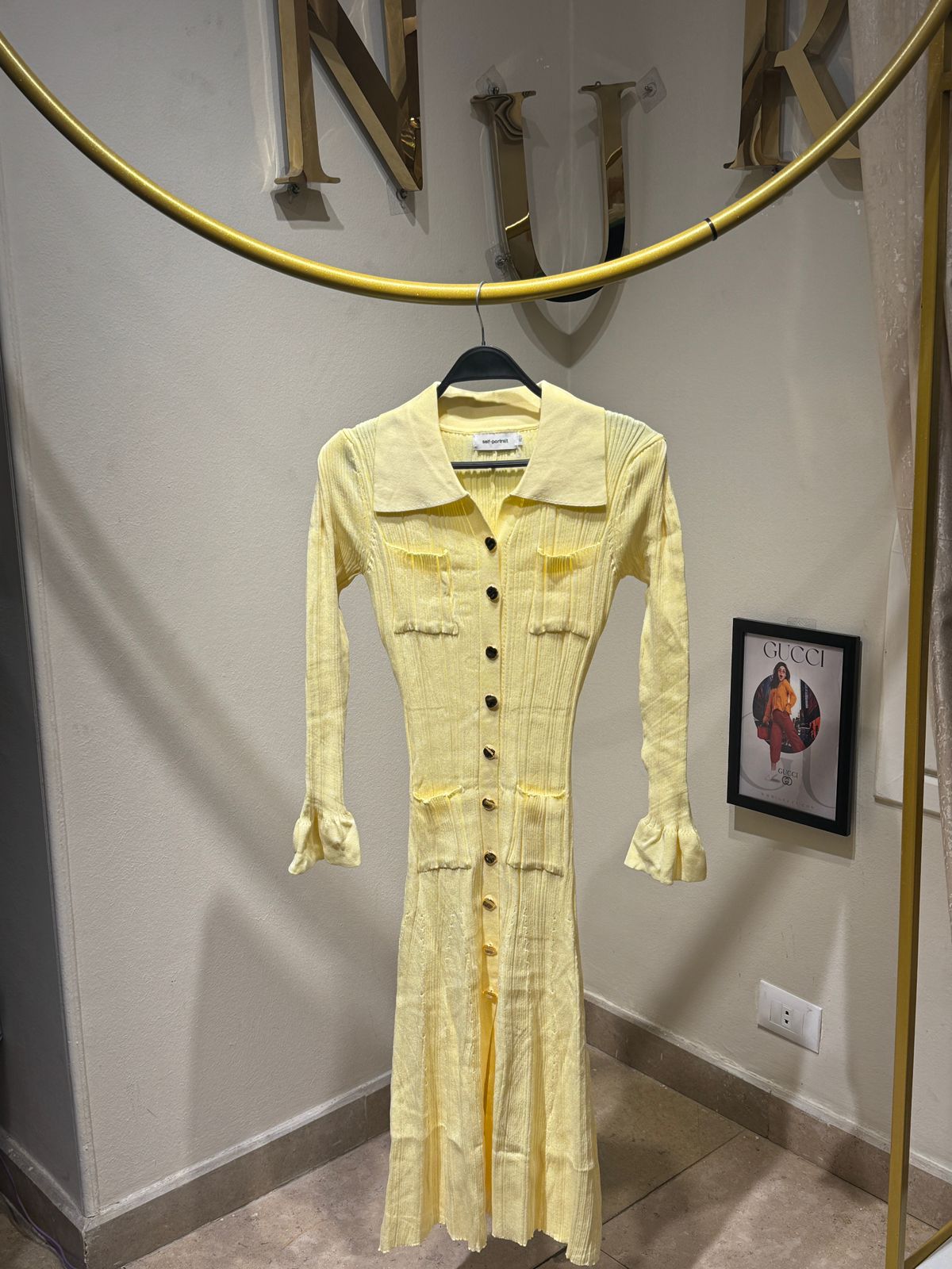 SELF PORTRAIT LONG DRESS WITH GOLD BUTTON DETAILS IN BUTTER YELLOW
