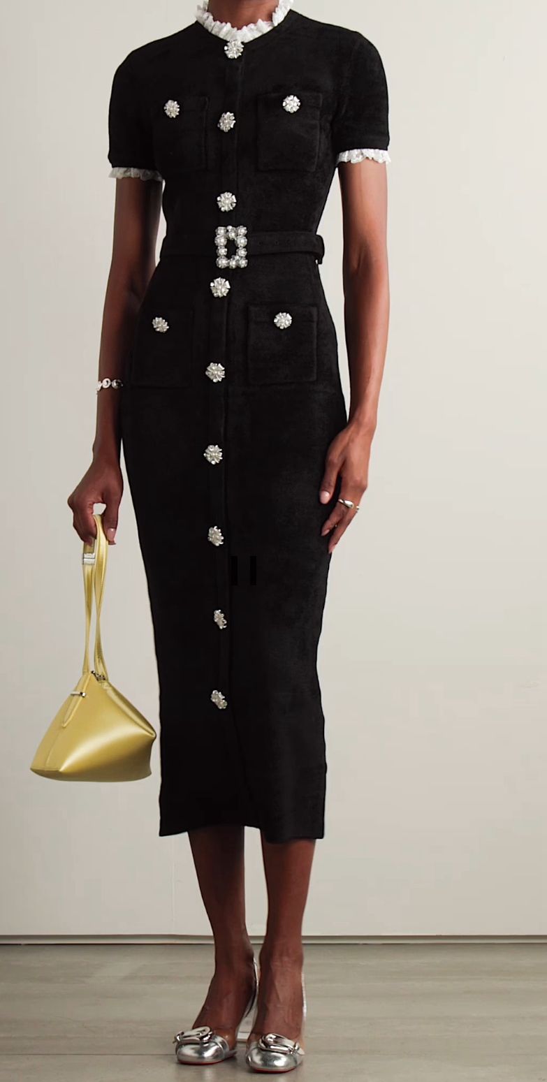 CHENILLE BELTED MIDI DRESS