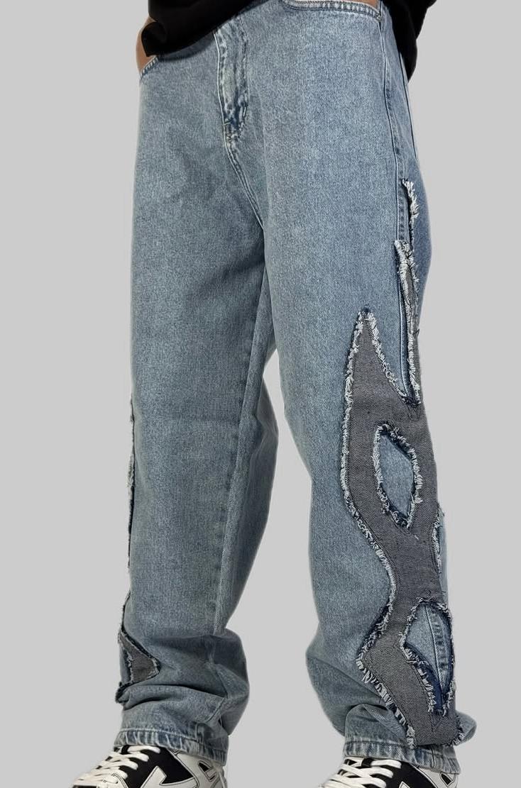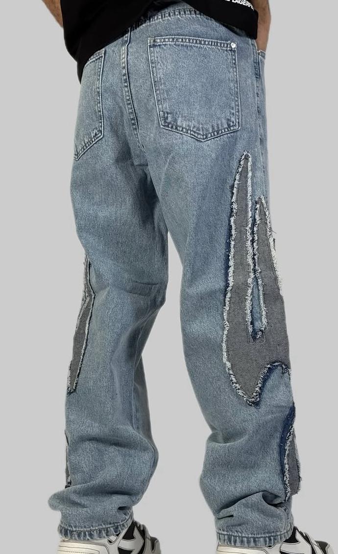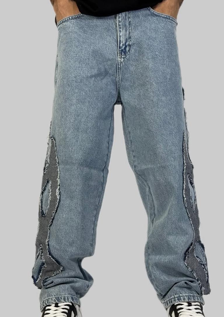 WIDE LEG BLUE JEANS WITH SIDE DETAIL