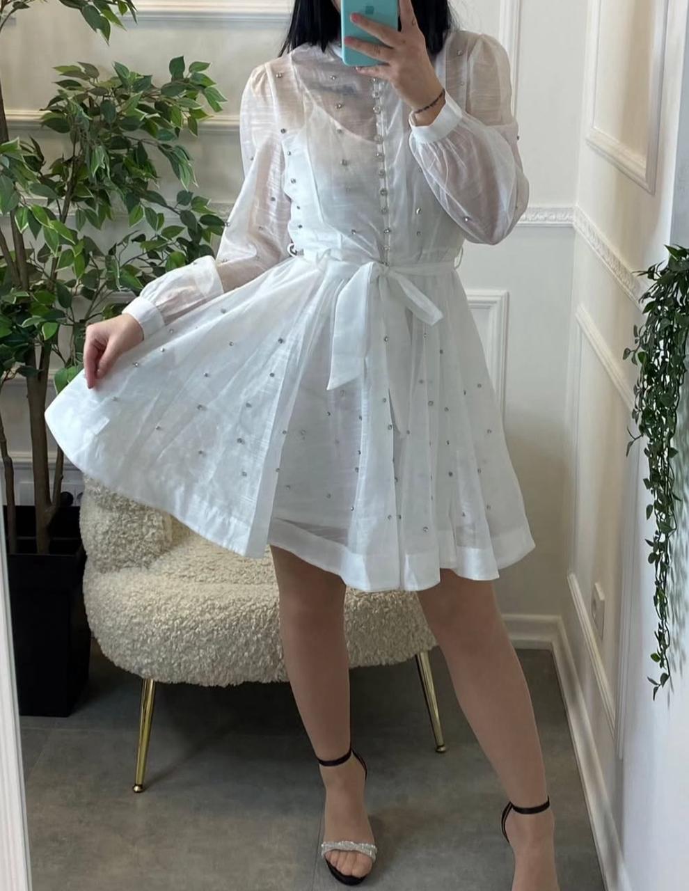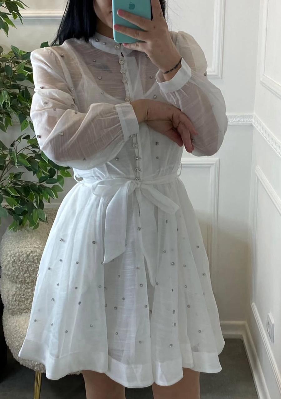 ZIMMERMANN MINI DRESS WITH DAIMOD DETAILS IN WHITE